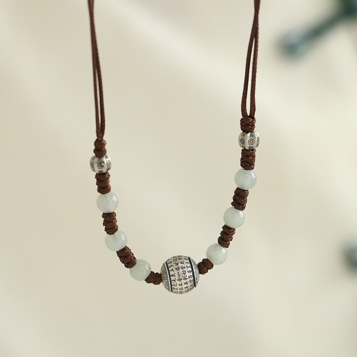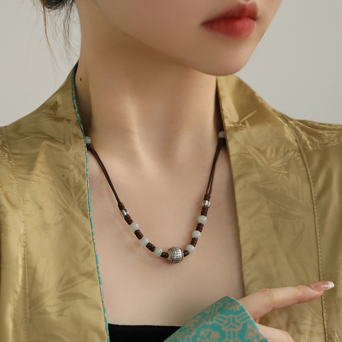 925纯银翡翠A货项链女编织绳设计感轻奢百搭锁骨链国风新中式饰品