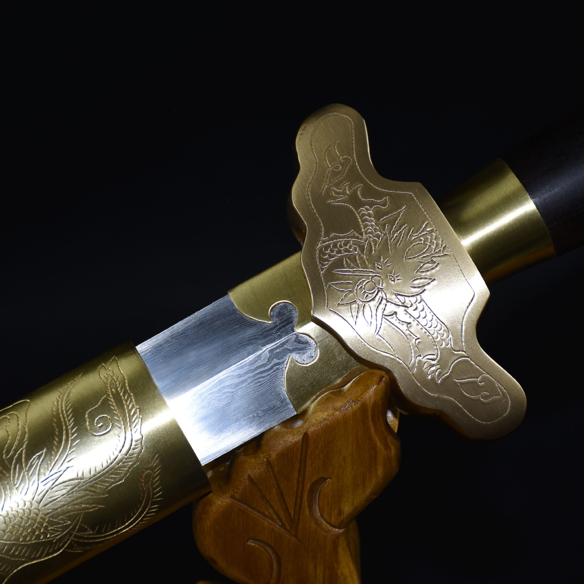 龙泉市刀剑鬼手作花纹钢包铜一体传统宝剑防身影视刀具唐剑未开刃