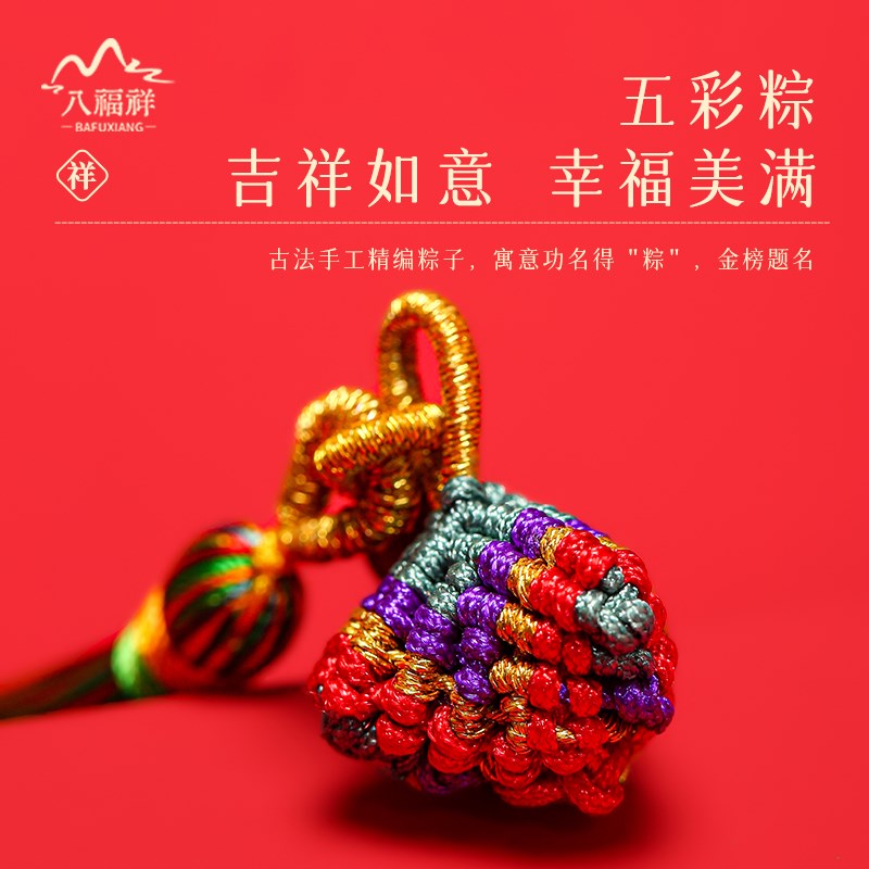 现货速发端午节五彩绳扣挂件古法手工编织小粽子五色线彩绳小挂件