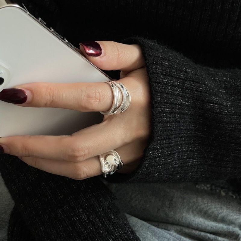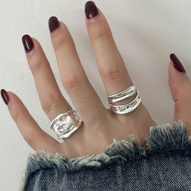重工宽边不规则戒指女双层几何时尚叠戴个性开口指环ins食指戒潮