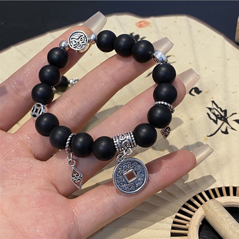 新中式火神双圈招财纳福檀木串珠手链小众设计古风情侣手串礼物