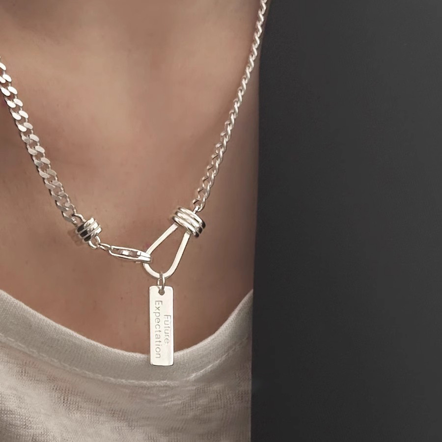 几何字母方牌吊坠项链女简约线条绳结百搭个性锁骨链ins风颈链潮