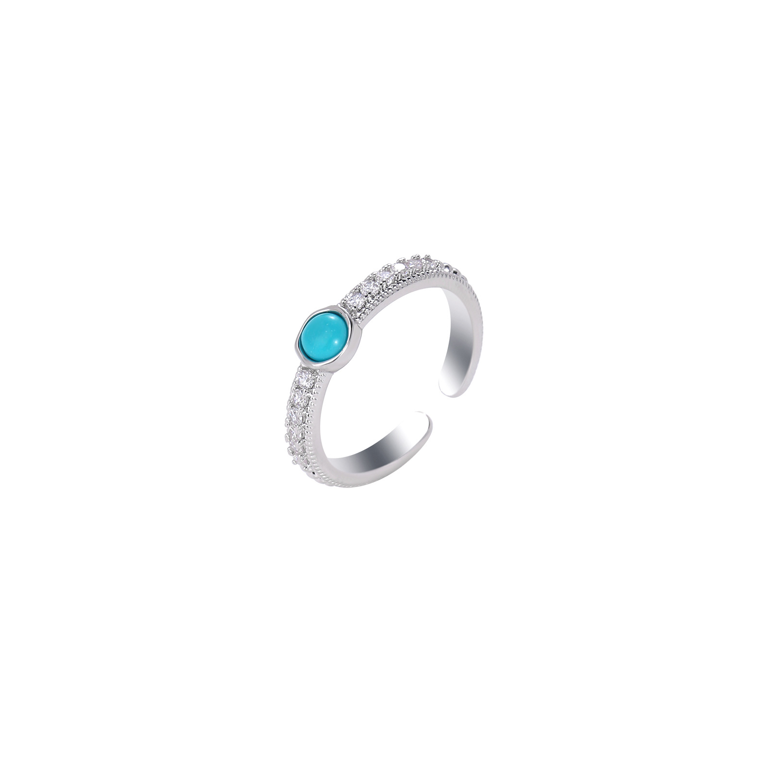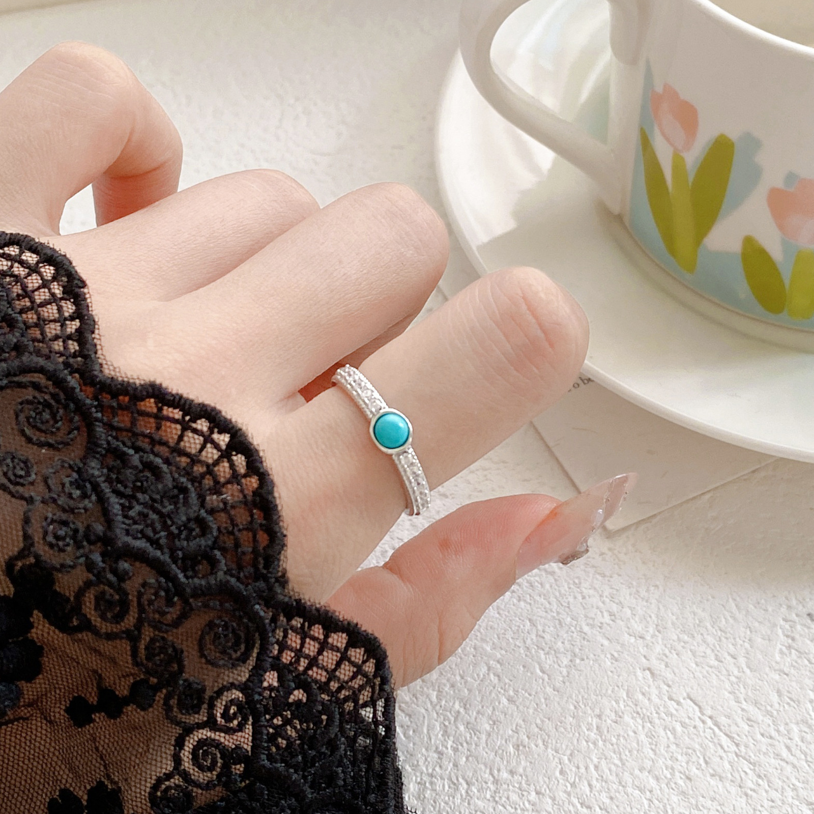 轻奢风蓝色松石复古男女同款可调节开口指环戒指小众食指戒