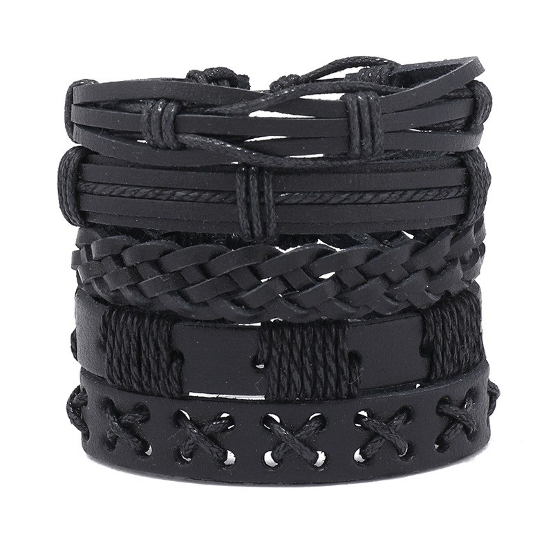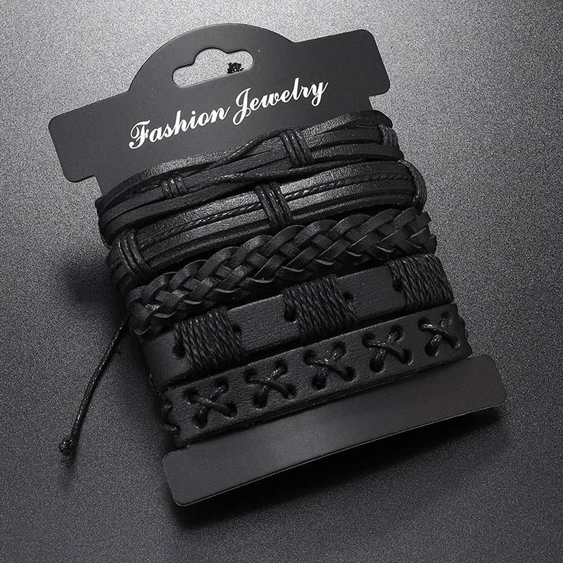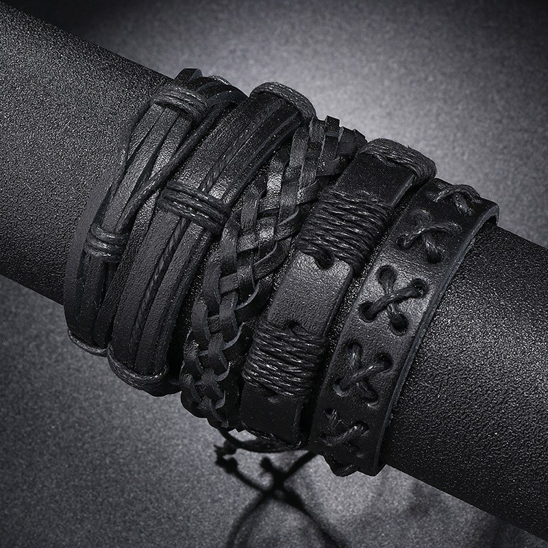 Mens DIY 5Piece Set of Handcrafted Multilayer Black Leather
