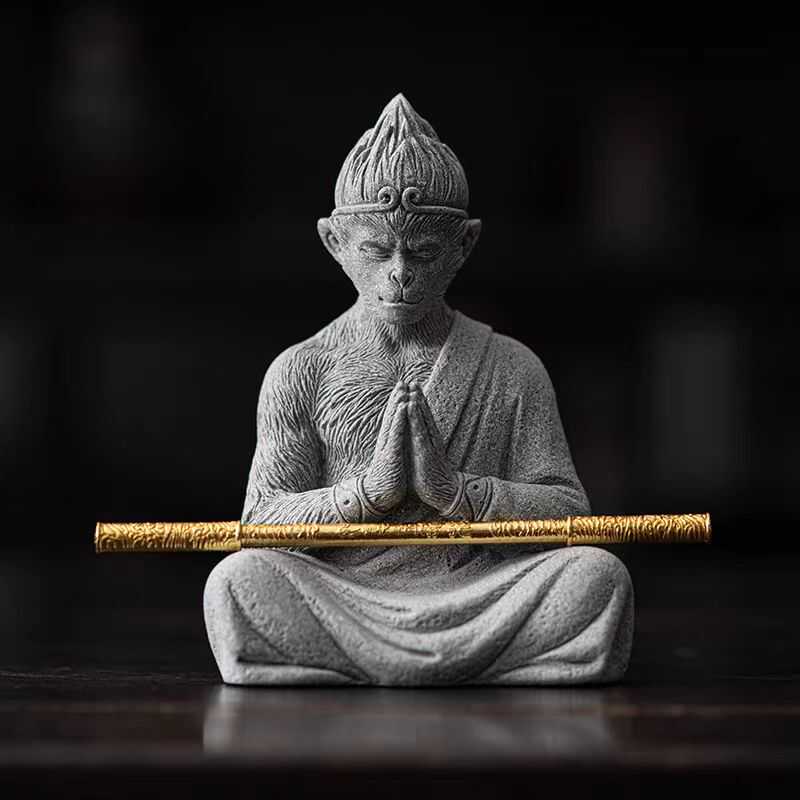 青砂石黑神话悟空鱼缸水族造景斗战胜佛茶宠齐天大圣桌面摆件佛像