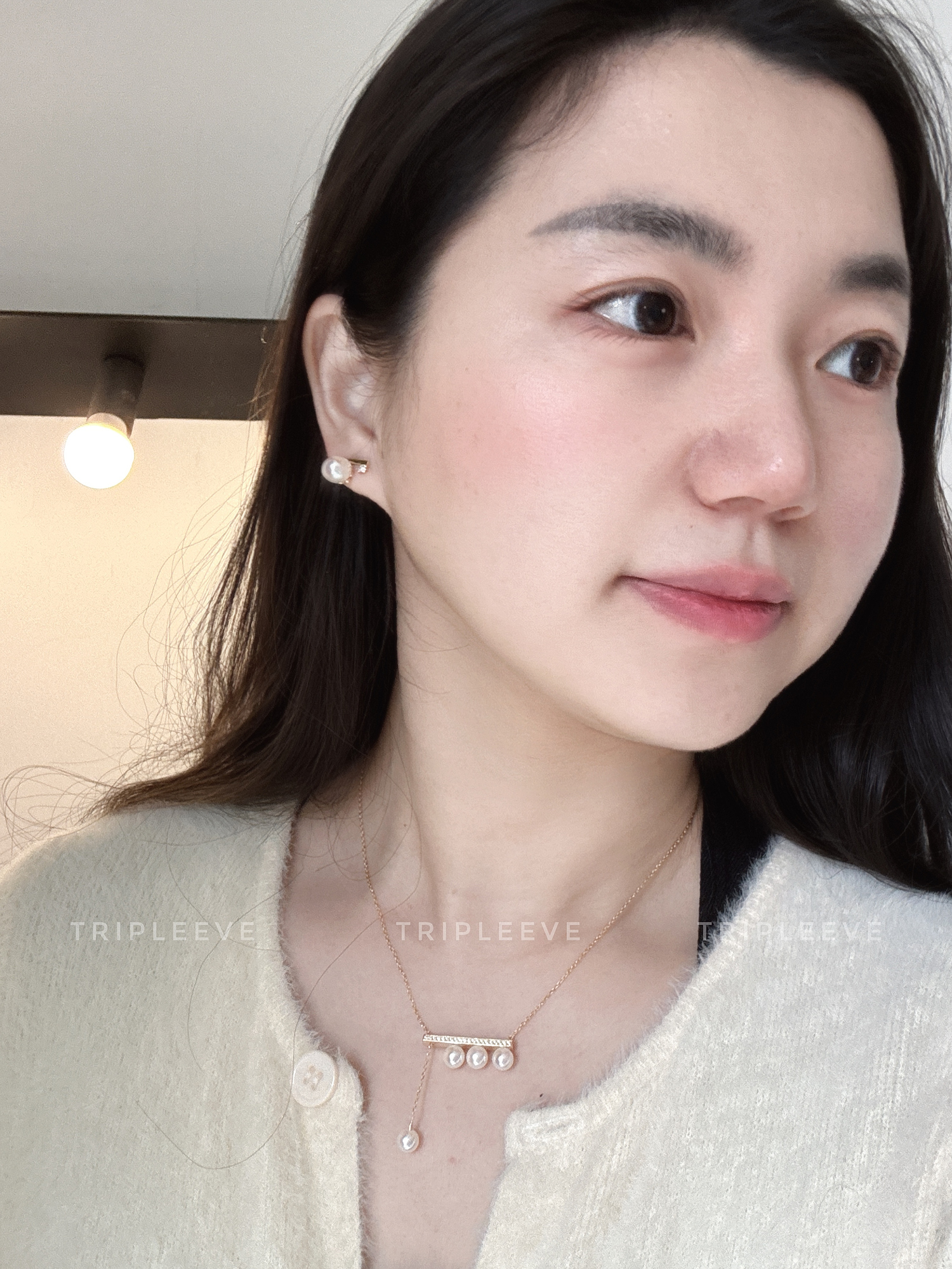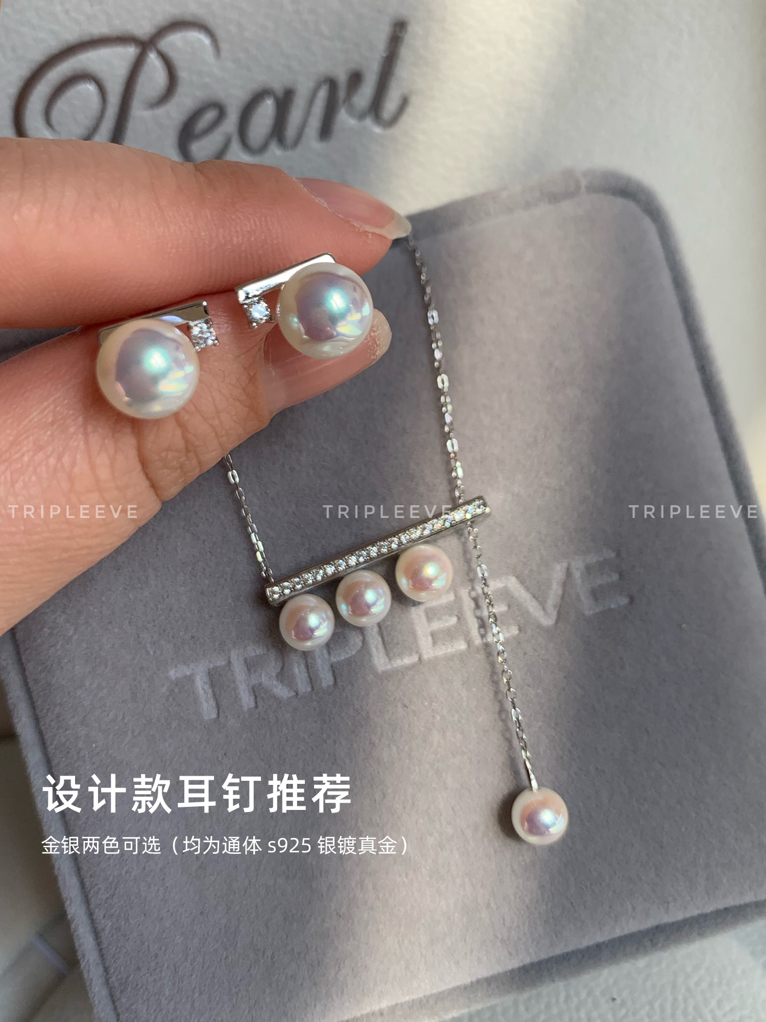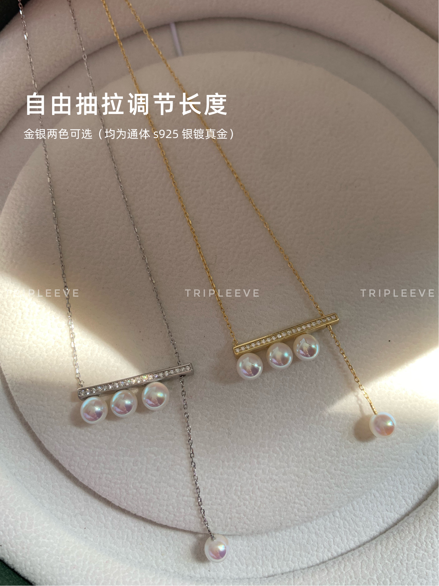 经典平衡木系列!极光天女珍珠可抽拉925银镀金项链耳钉戒指套装