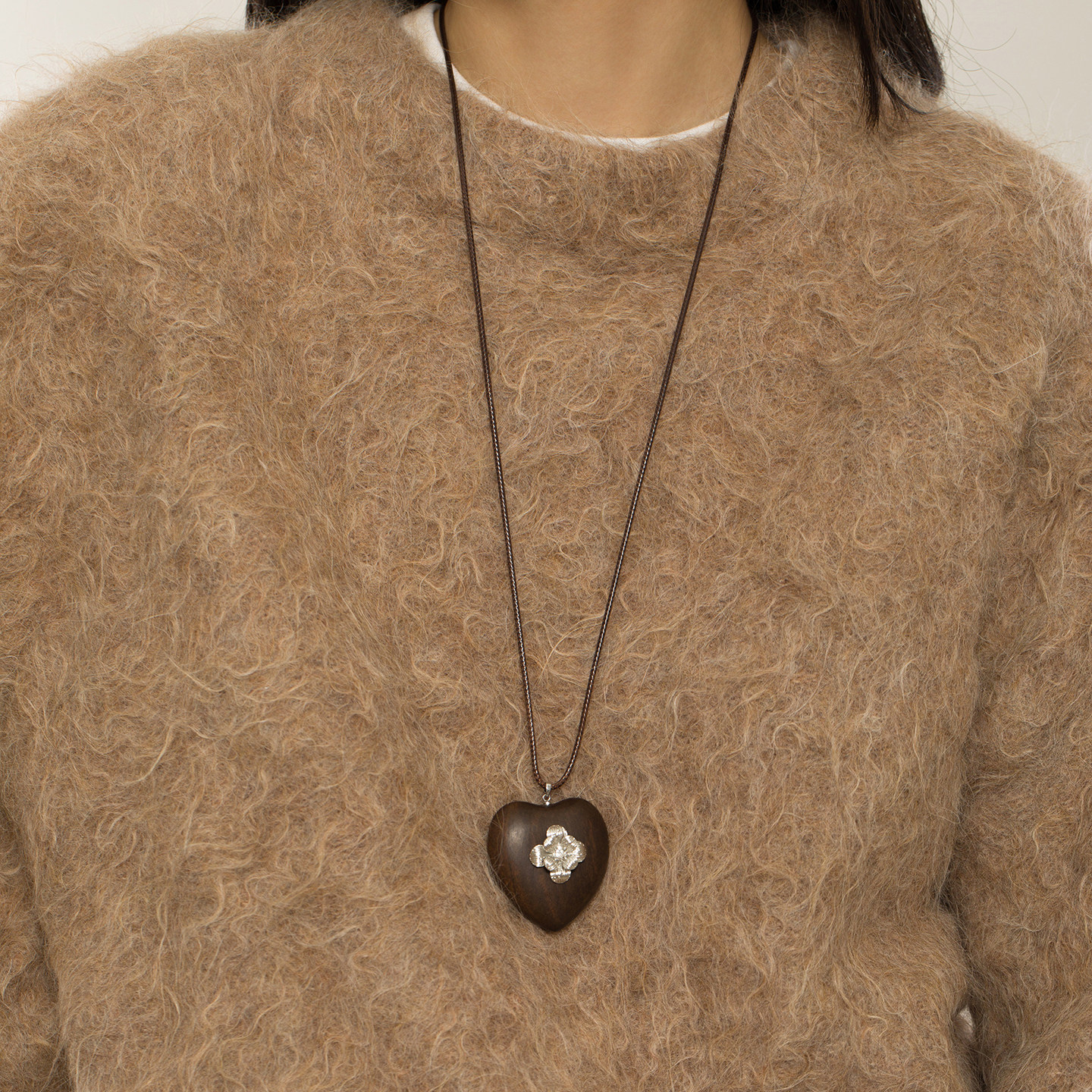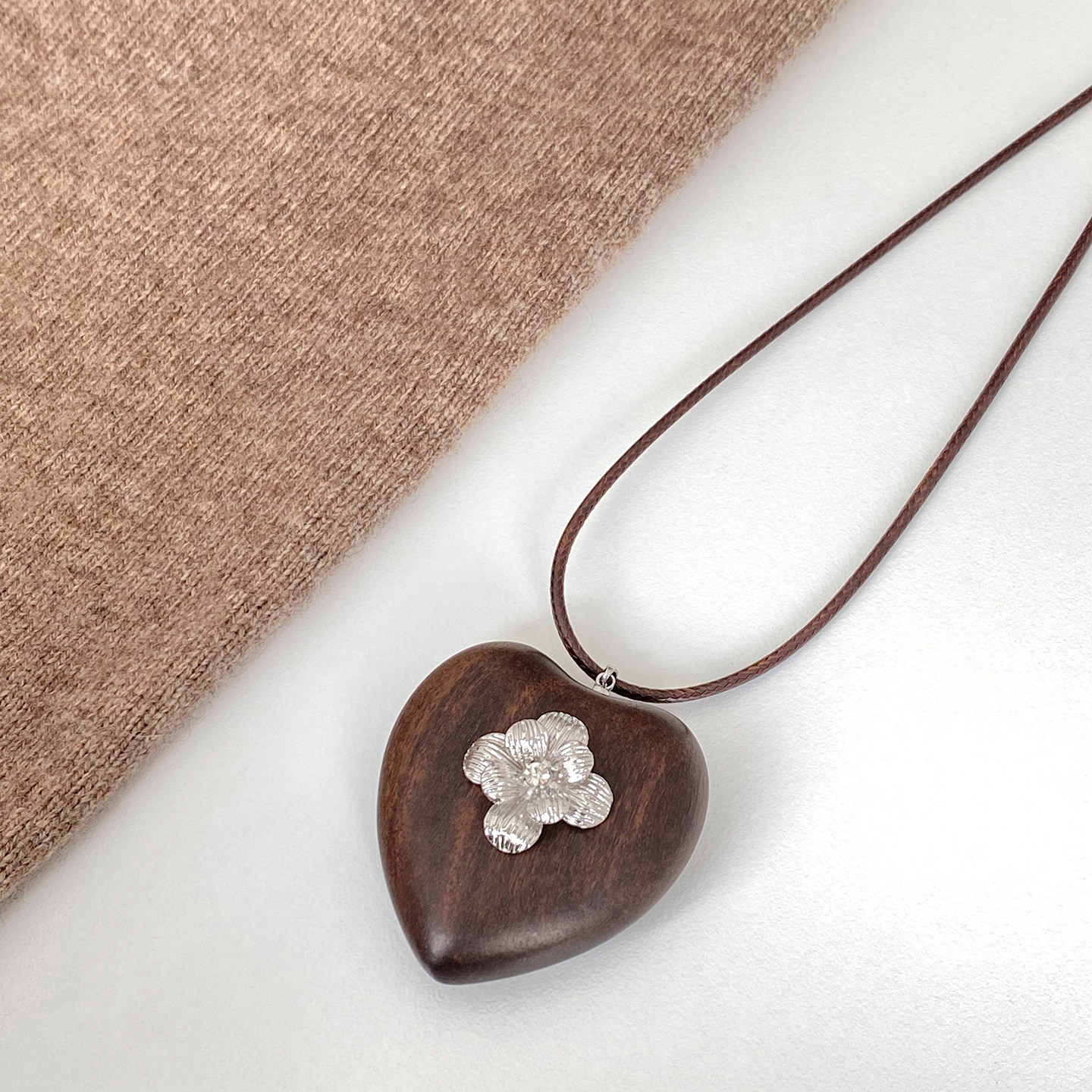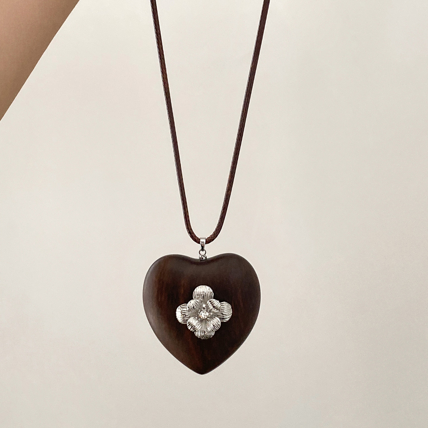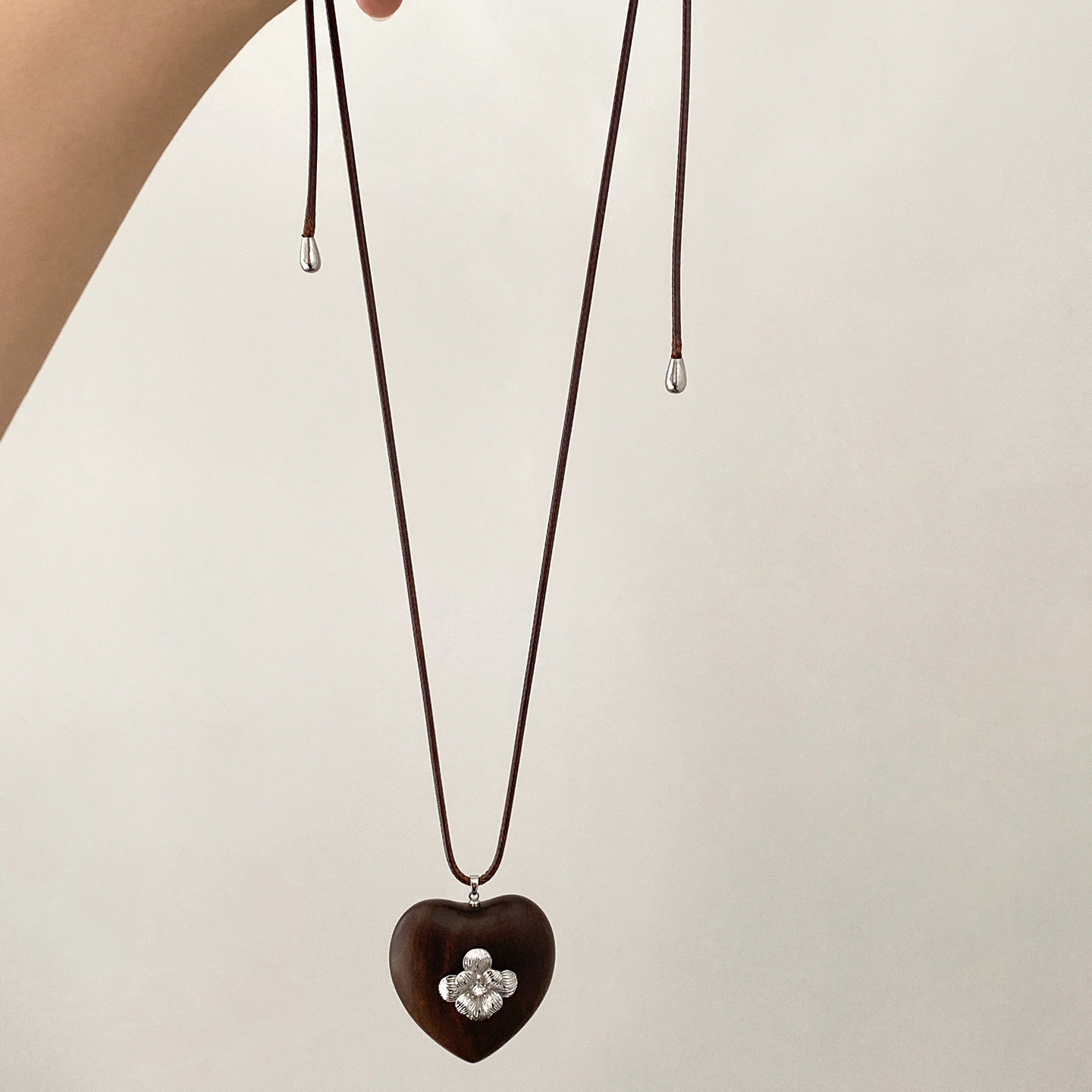 棕色皮绳木质爱心长款项链2025新款高级感抽拉式秋冬配饰毛衣链女