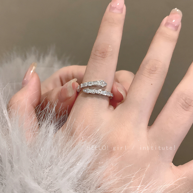 高级感闪钻灵蛇形戒指女设计开口食指戒冷淡风个性百搭指环手饰品