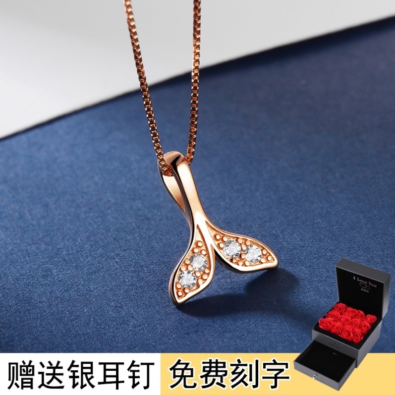 项链女纯银个性潮网红锁骨链ins简约气质鱼尾圣诞节礼物送女友