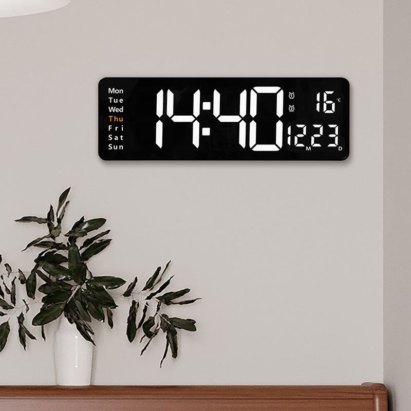 大屏功能显示智能家用时钟北欧数字钟表简约客厅挂钟led壁挂钟