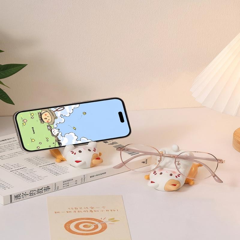 可爱卡通小猫眼镜放置架桌面手机支架摆件办公桌好物女生工位实用