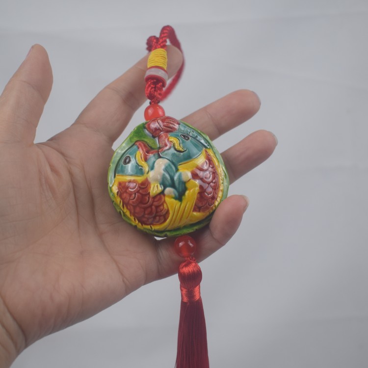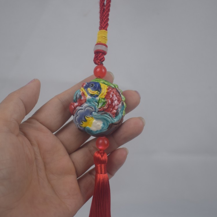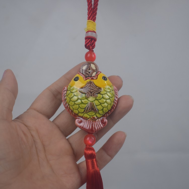 家居装饰品客厅鱼挂件陶瓷工艺品石湾公仔壁挂车挂包包挂送礼鲤鱼