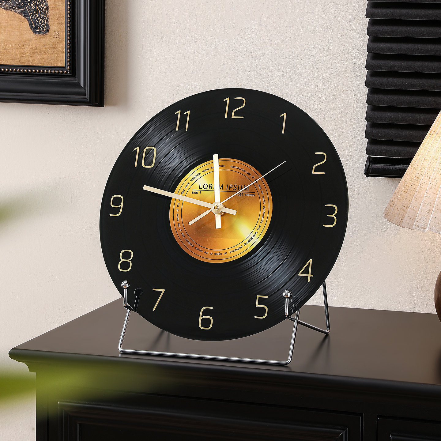 客厅电视柜钟表摆台式桌面时钟摆放式中古风软装挂钟黑胶唱片座钟