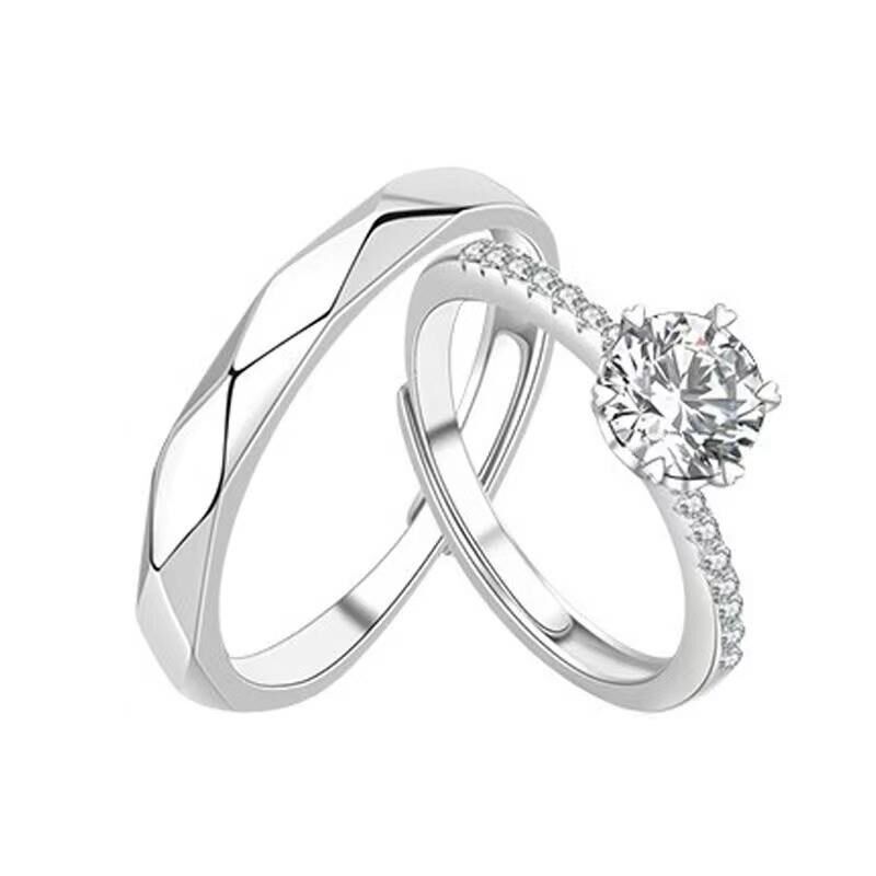 莫桑石情侣戒指一对男女钻戒订婚求结婚生日情人节礼物送女友老婆