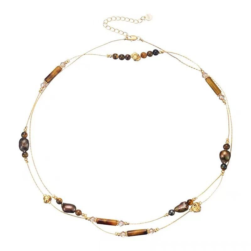 复古美拉德虎眼石串珠项链时尚潮流小众设计感毛衣链简约精致饰品
