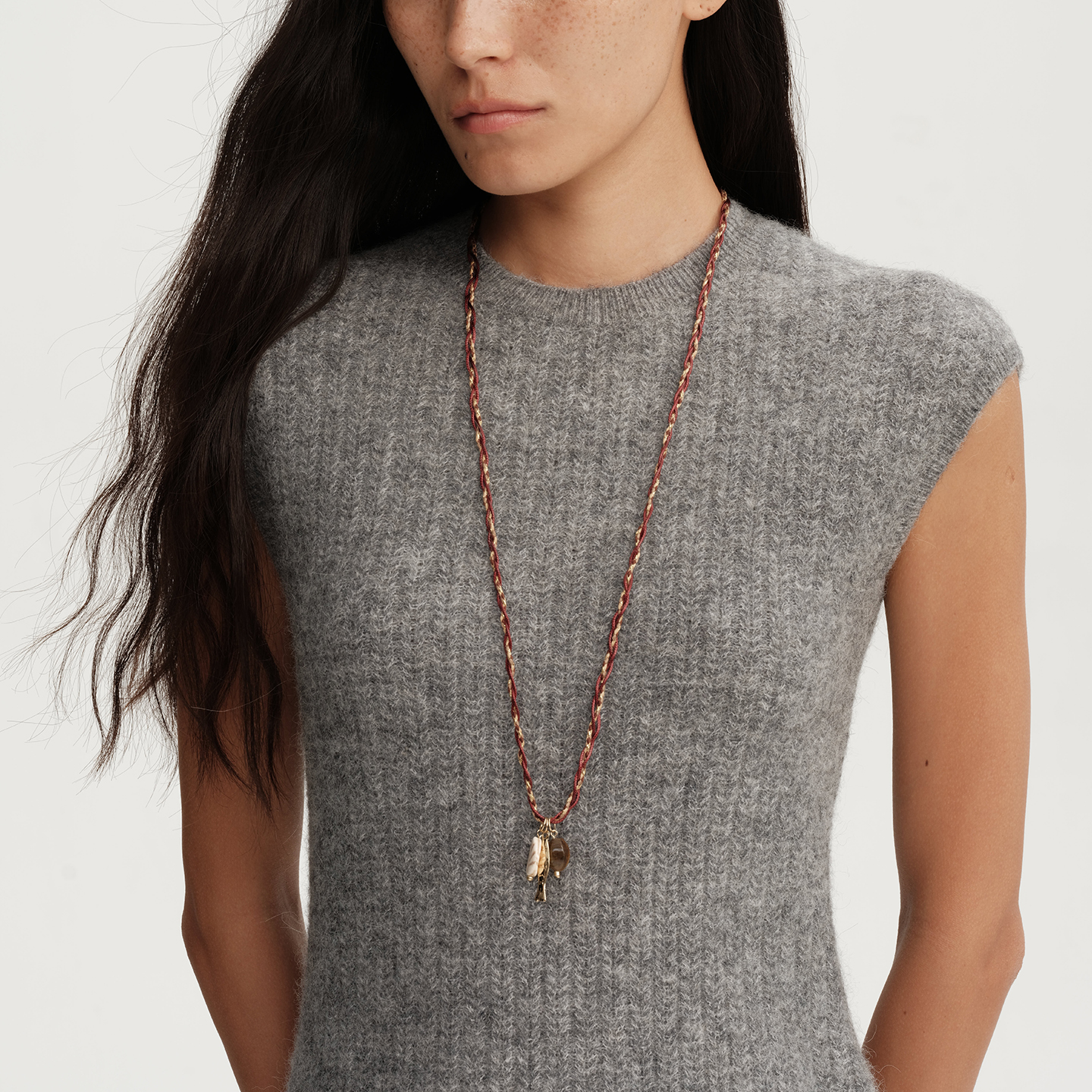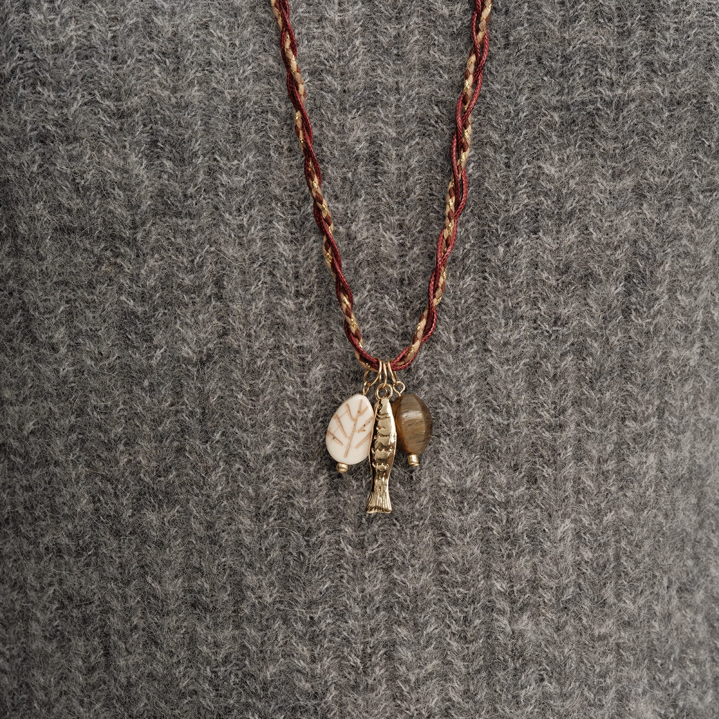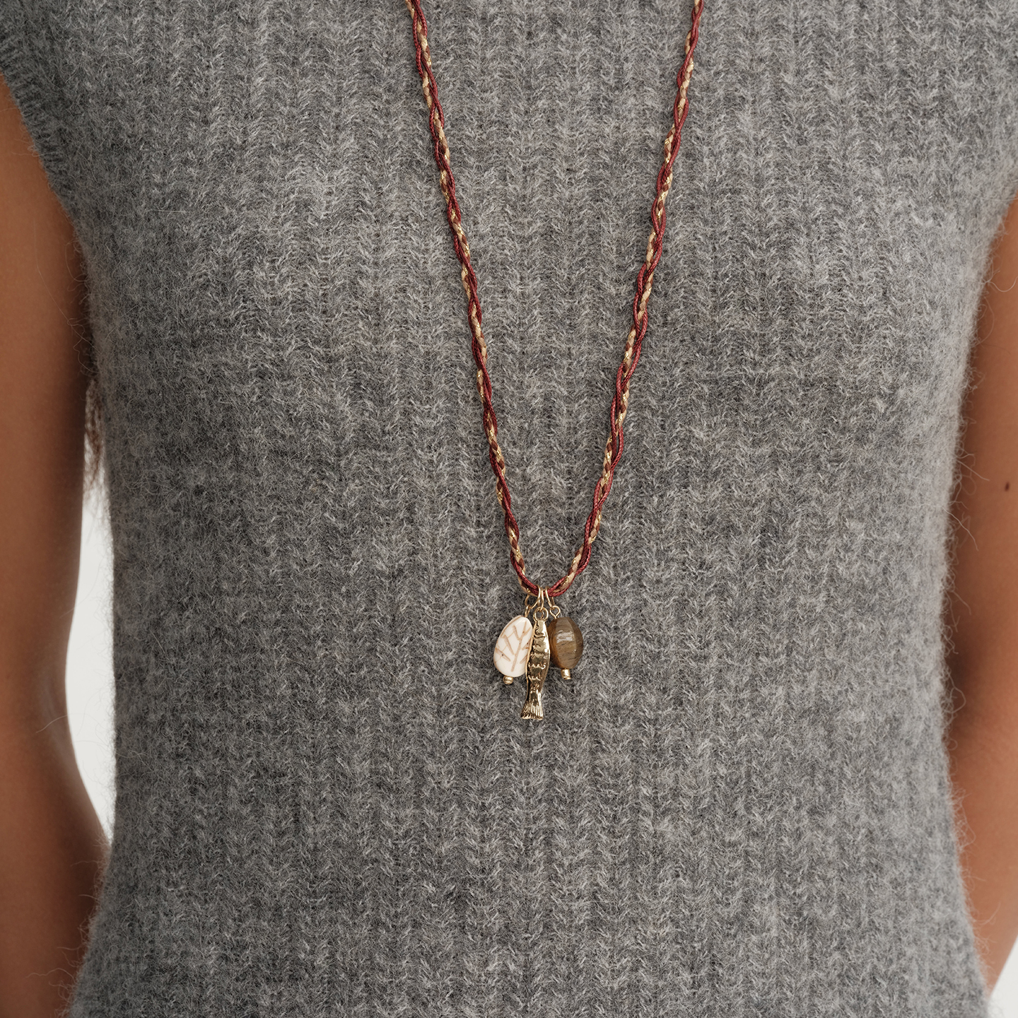 【CnHnOn脂肪商店】圣诞红编织绳树叶贝壳小鱼虎眼石长项链毛衣链