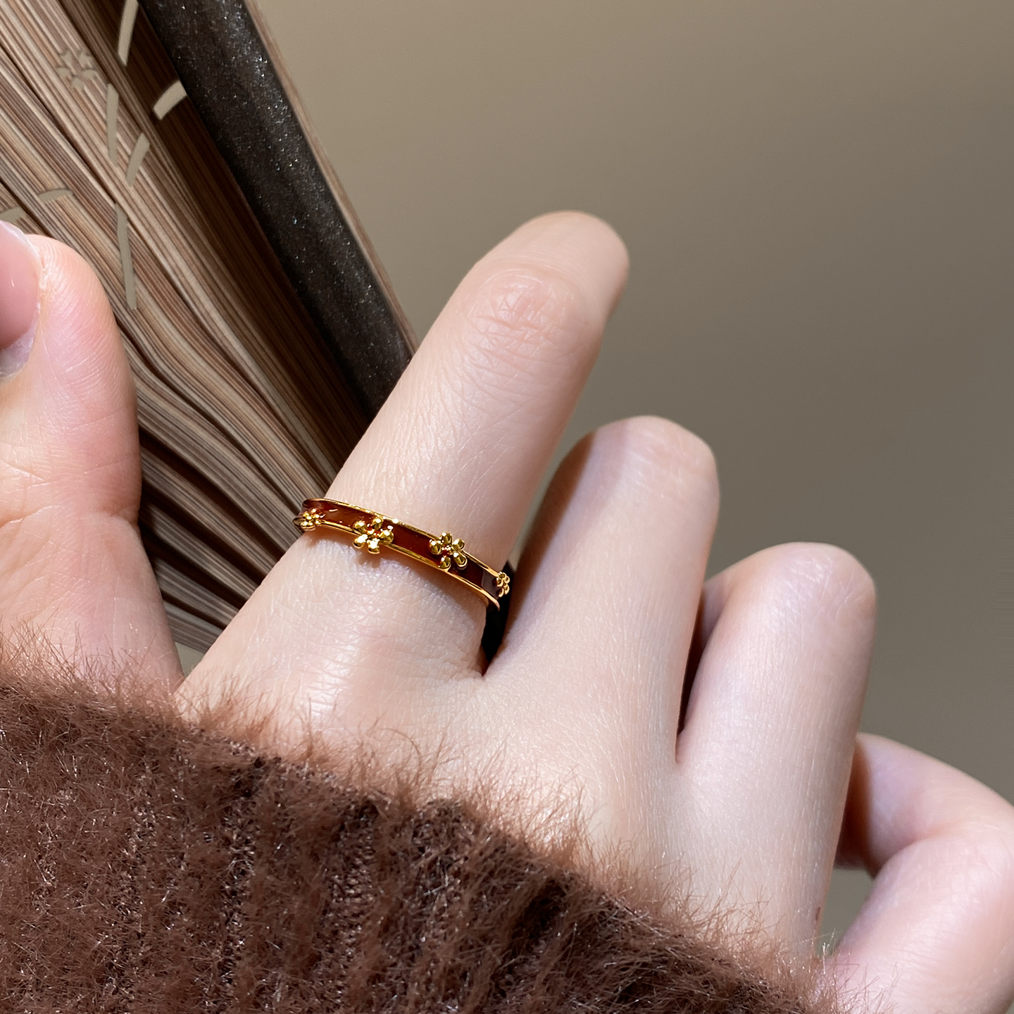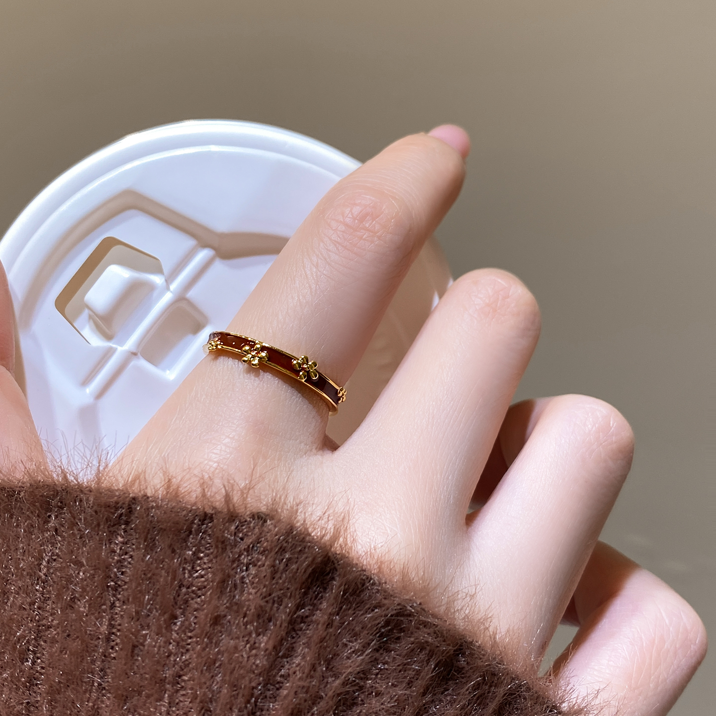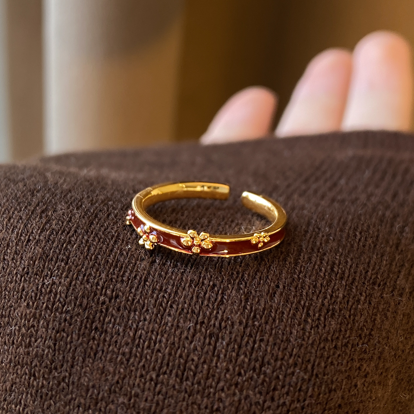 秋冬红色滴釉小花戒指女轻奢高级感食指戒2025新款爆款开口戒指环