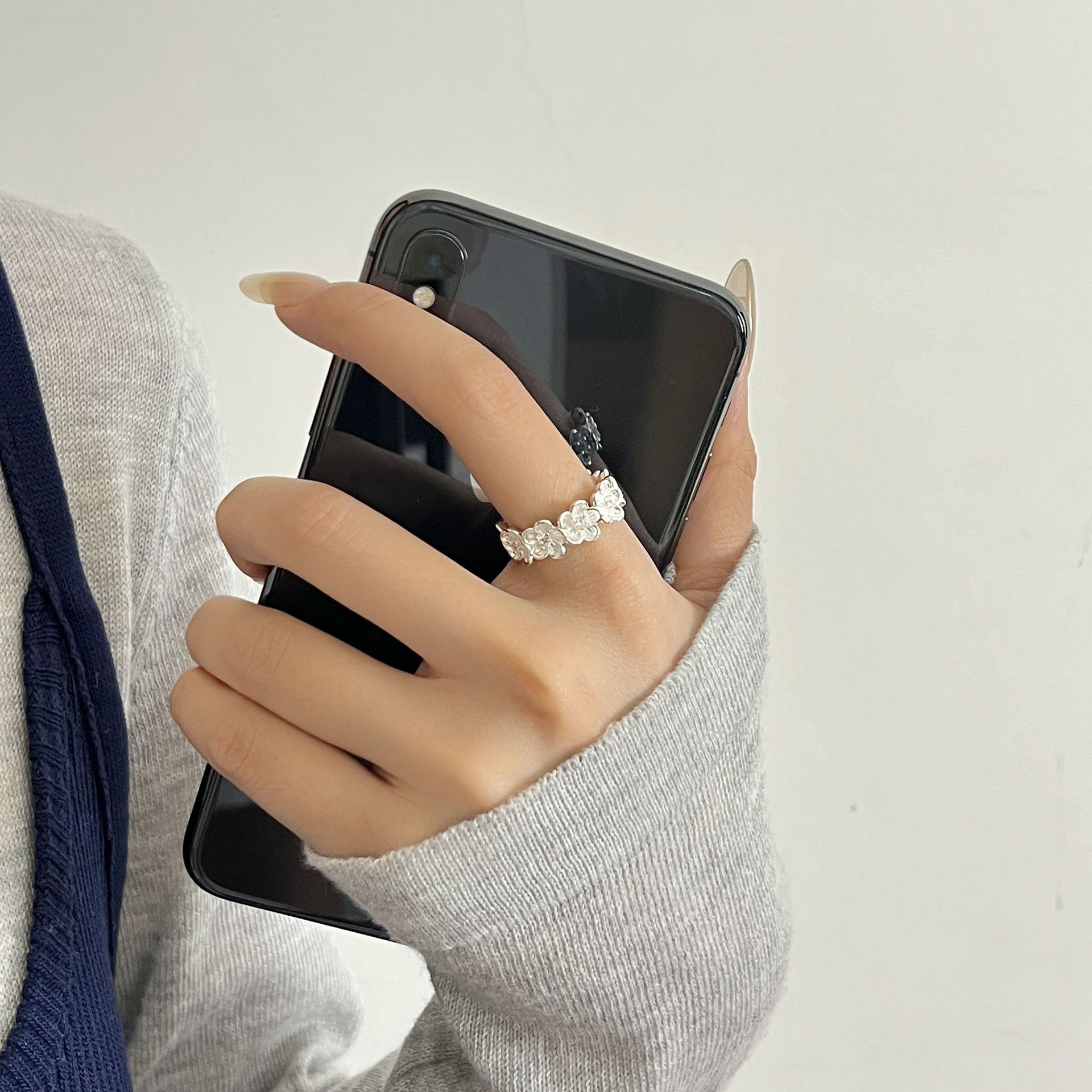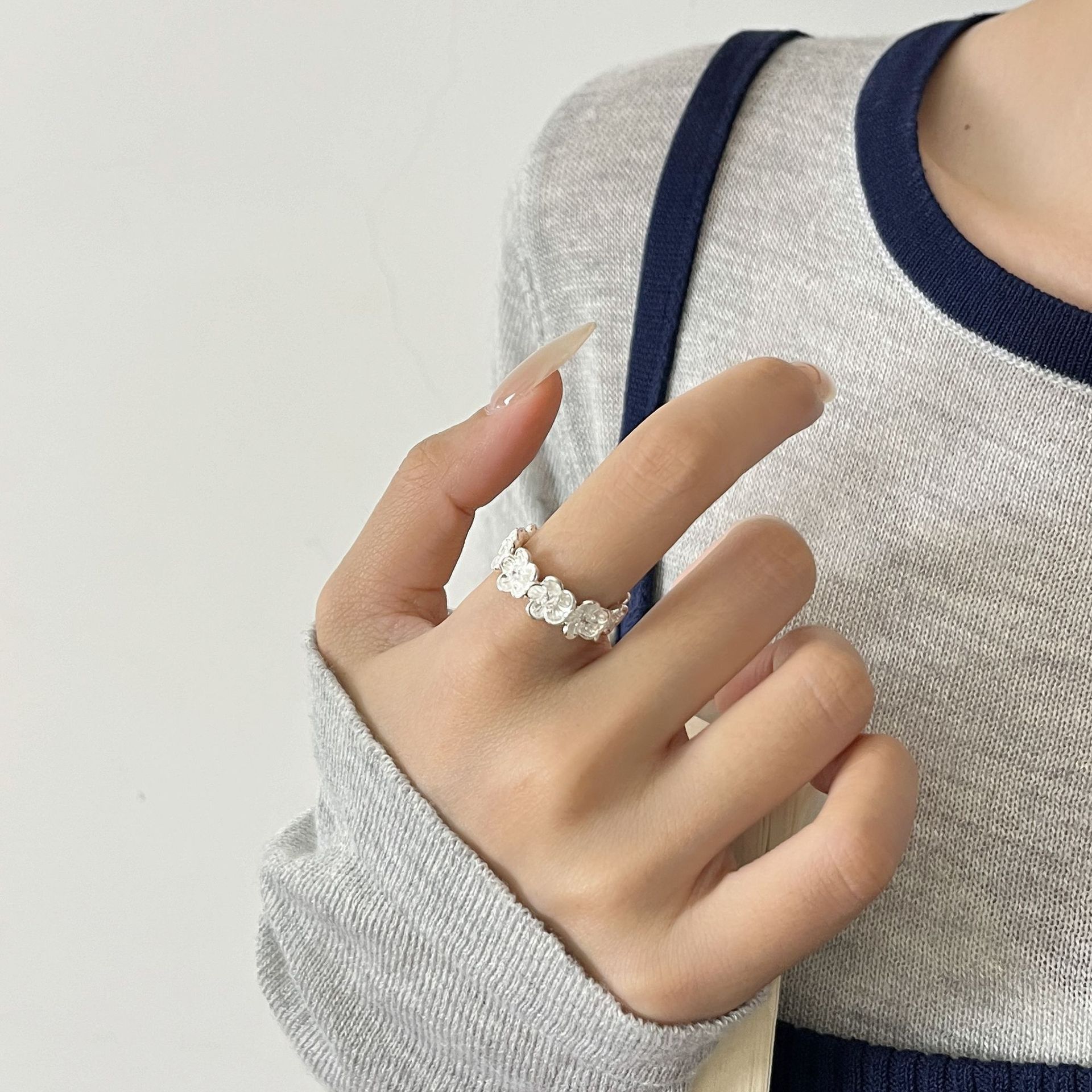 一恋甜酷花朵戒指女韩版时尚百搭叠戴小众设计开口指环网红精致食