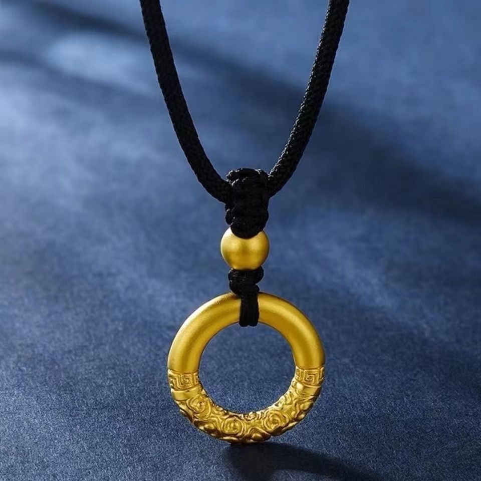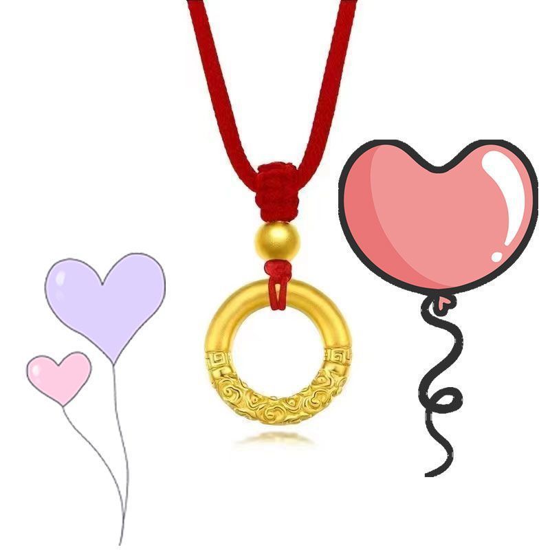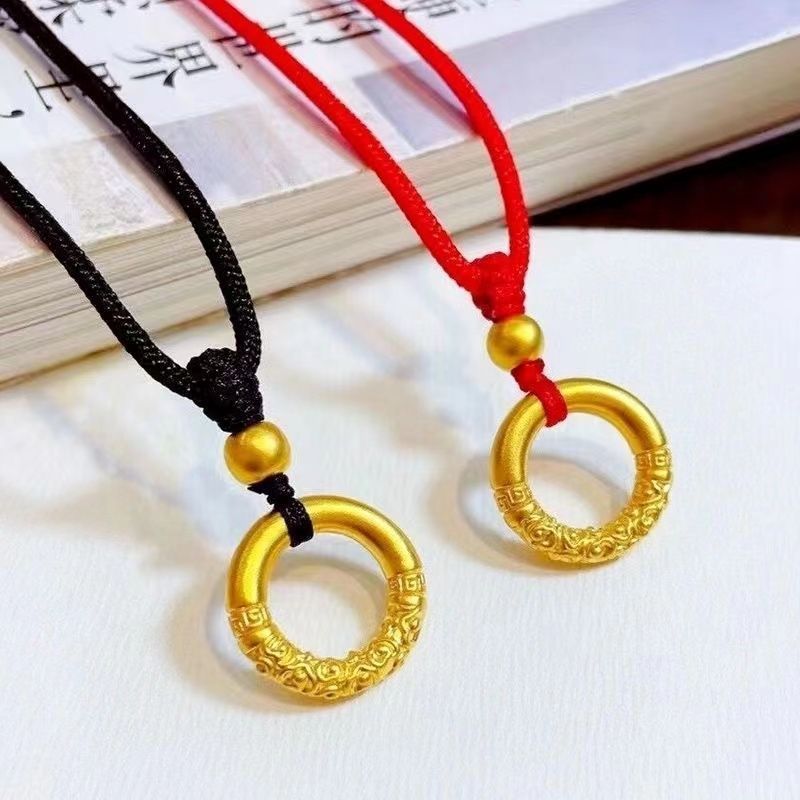 素圈平安扣吊坠编织项链女男金箍圈本命年红绳情侣甜甜圈项坠