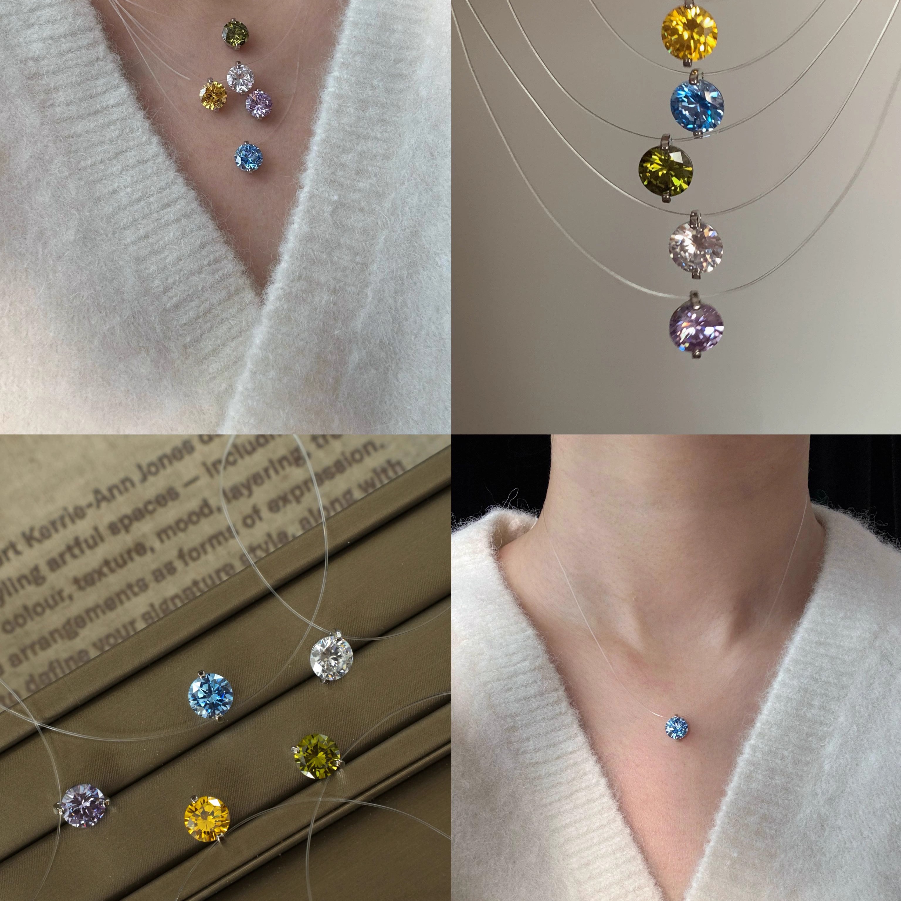 「人鱼之泪」闪钻!法式高级感经典百搭鱼线彩钻海蓝项链/锁骨链