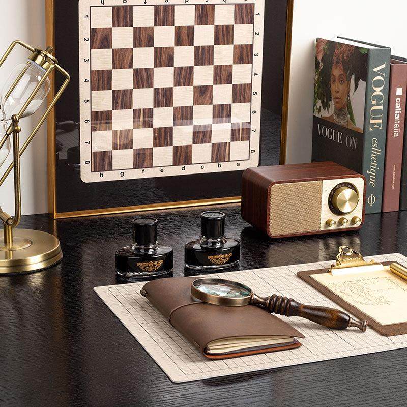 欧式样板间书房装饰摆饰样板房书桌软装覆古笔记本手稿钢笔放大镜