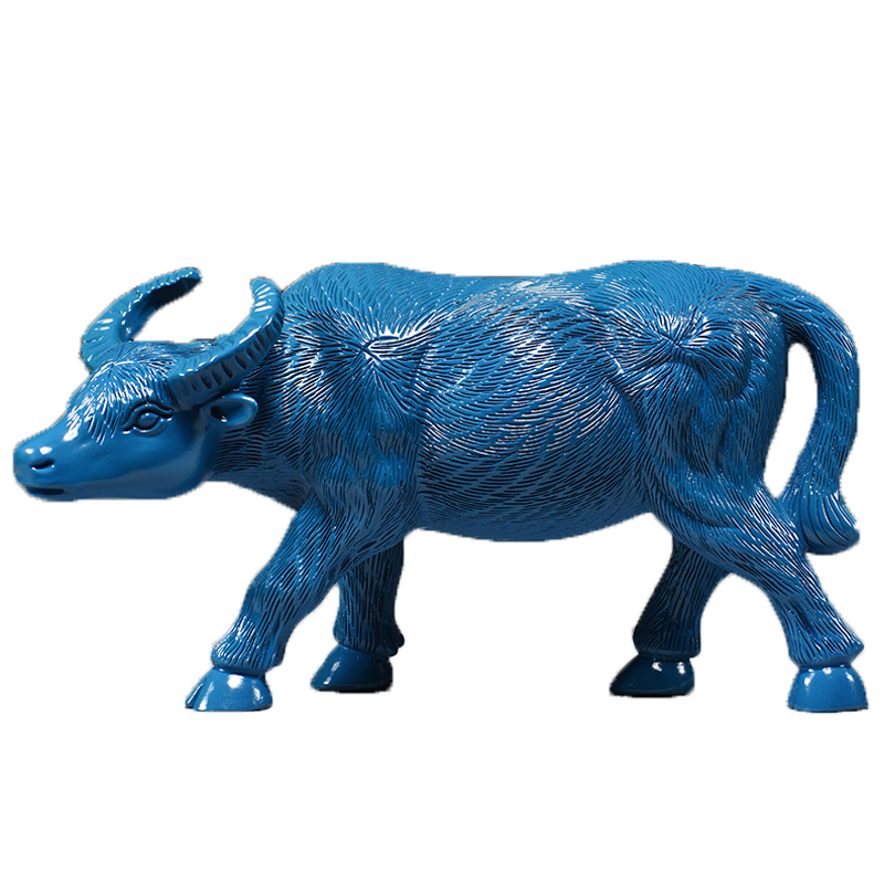 天蓝色木质水牛摆件木头雕刻十二生肖木制牛吉祥物实木装饰工艺品