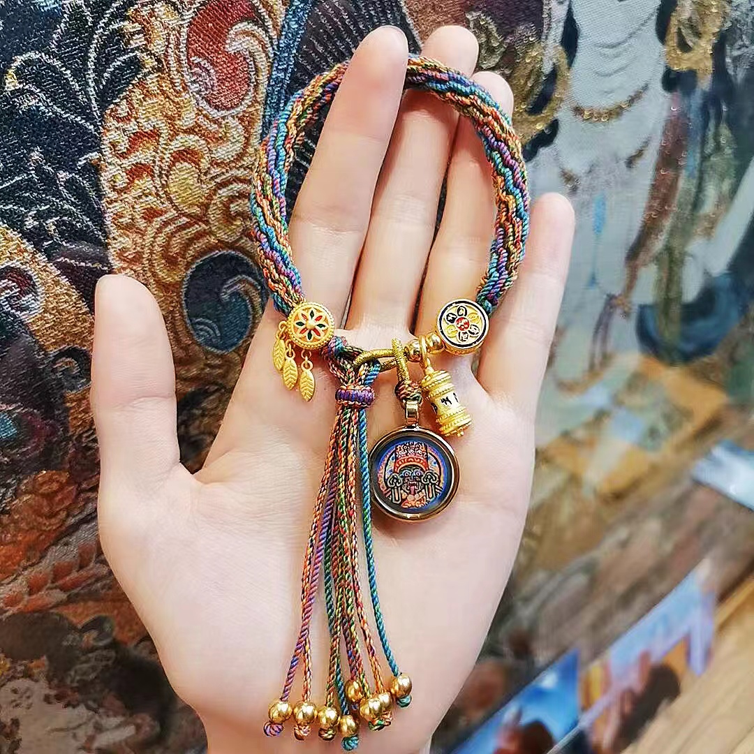 热贡矿物纯手绘扎基拉姆唐卡民族风手工编织藏式手链绳
