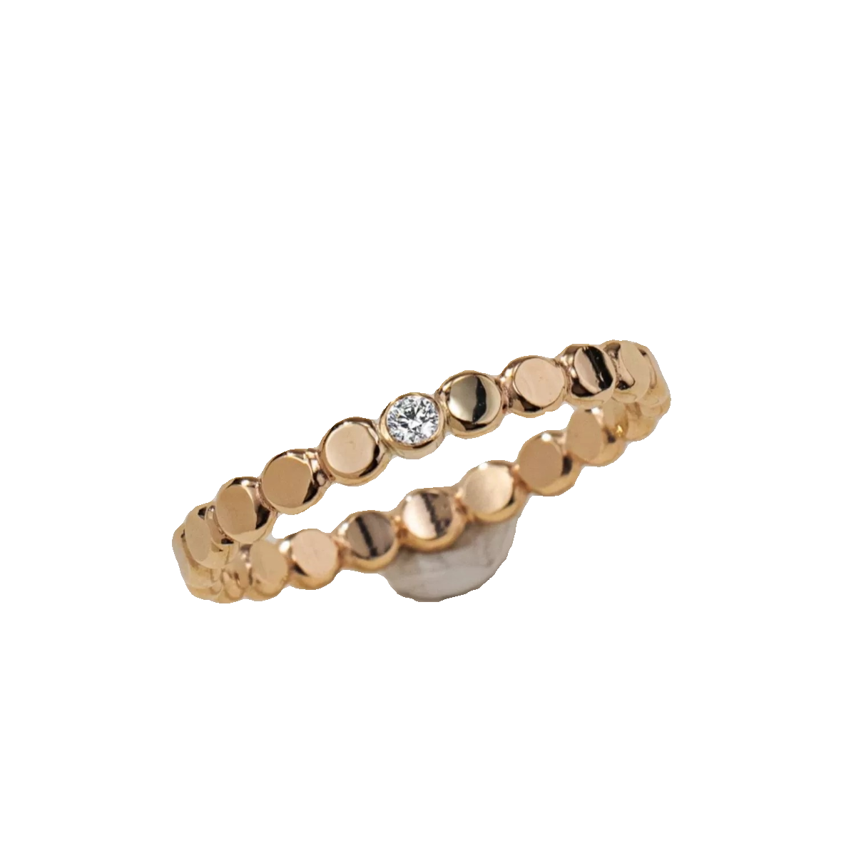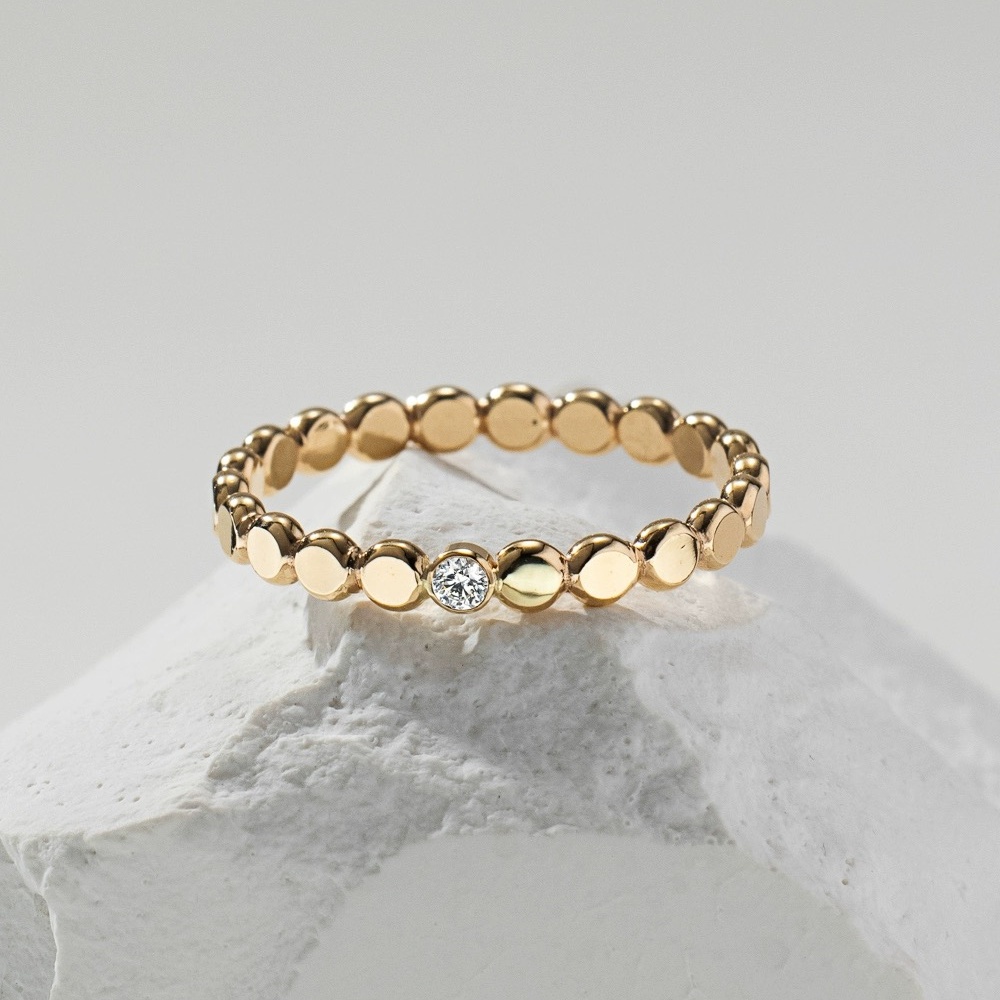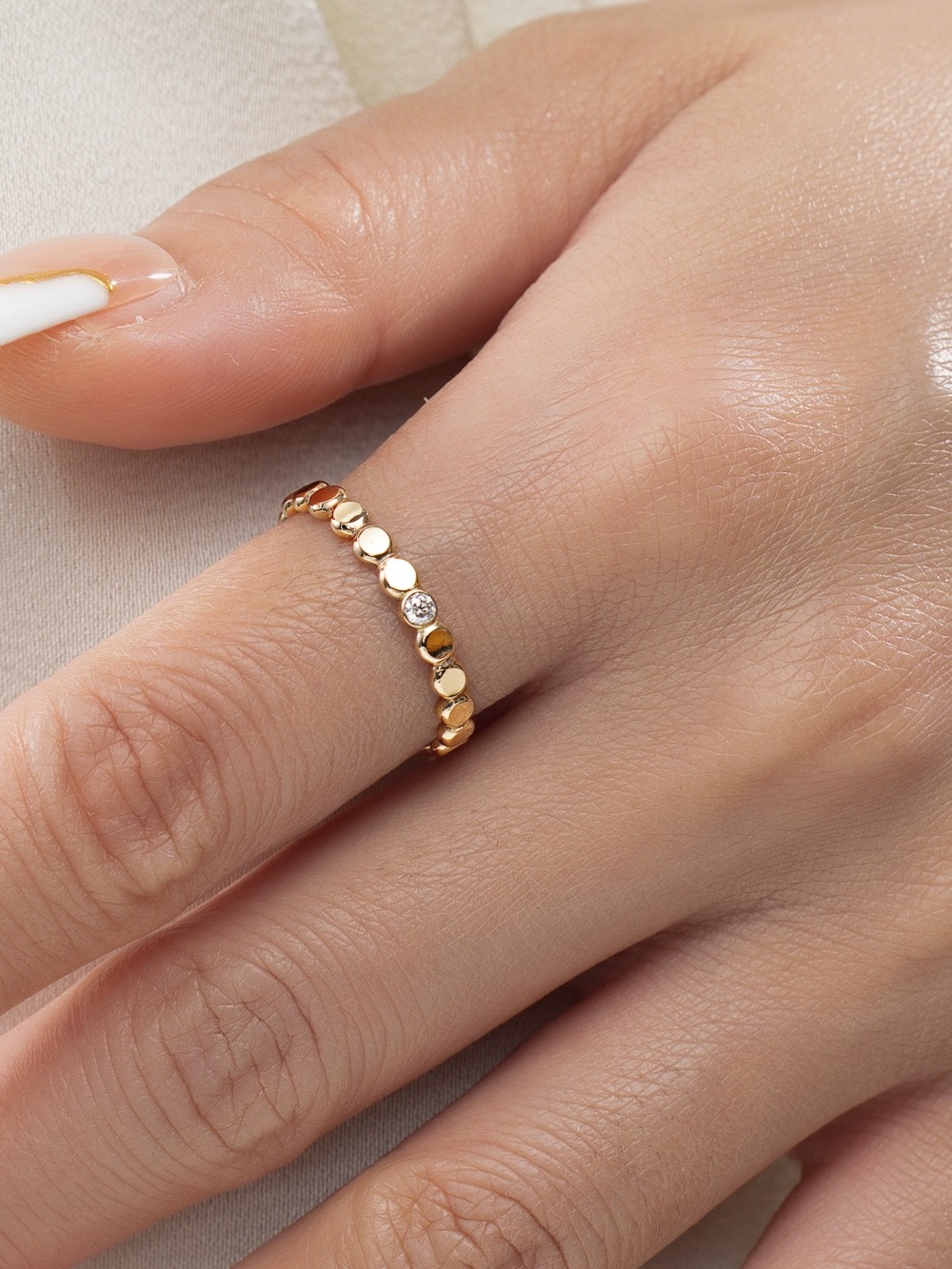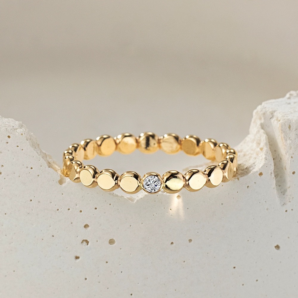 纯银镀金小金饼进口莫桑钻素圈戒指女叠戴小众简约百搭欧美风时尚