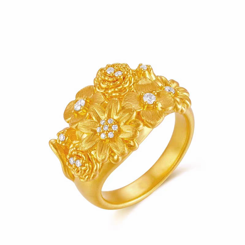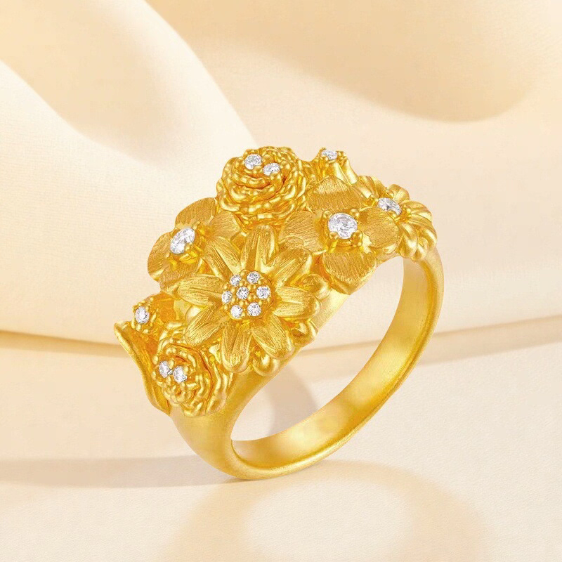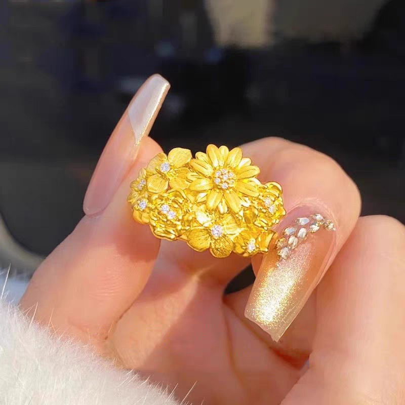 金包银繁花似锦戒指女活口轻奢高级感镶钻小雏菊花束指环送女友