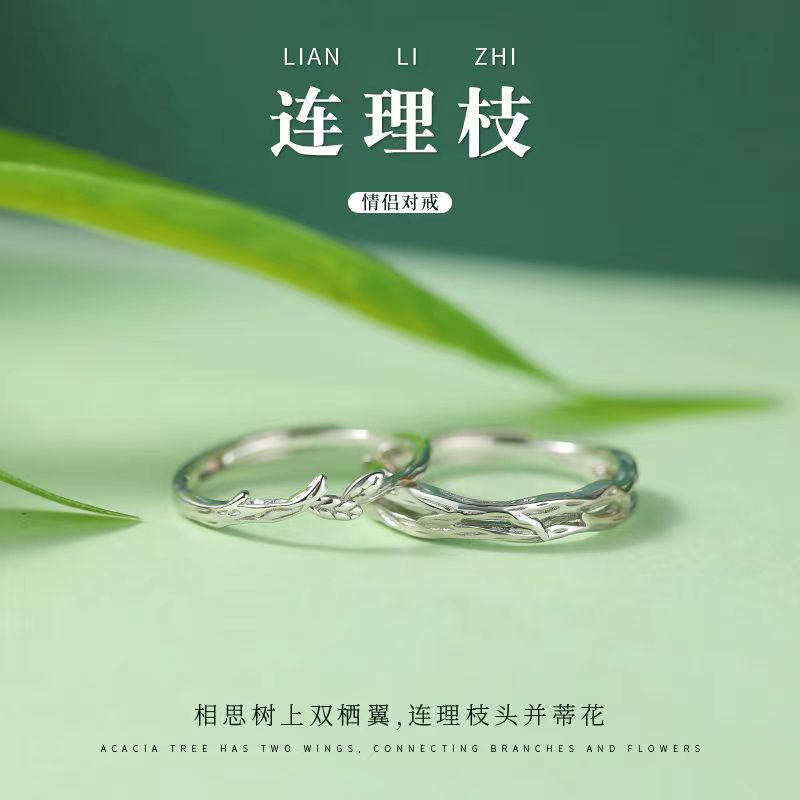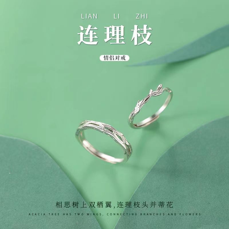 纯银情侣戒指男女一对小众设计高级感时尚个性新款连理枝对戒礼物