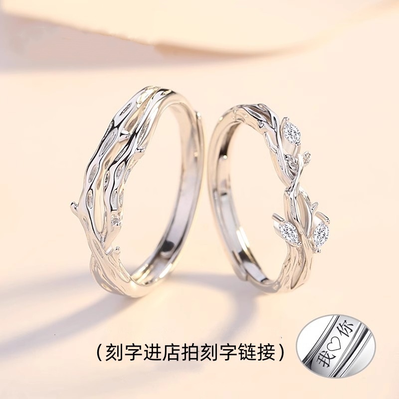 S999足银连理枝戒指情侣一对开口纯银对戒小众设计送男女礼物