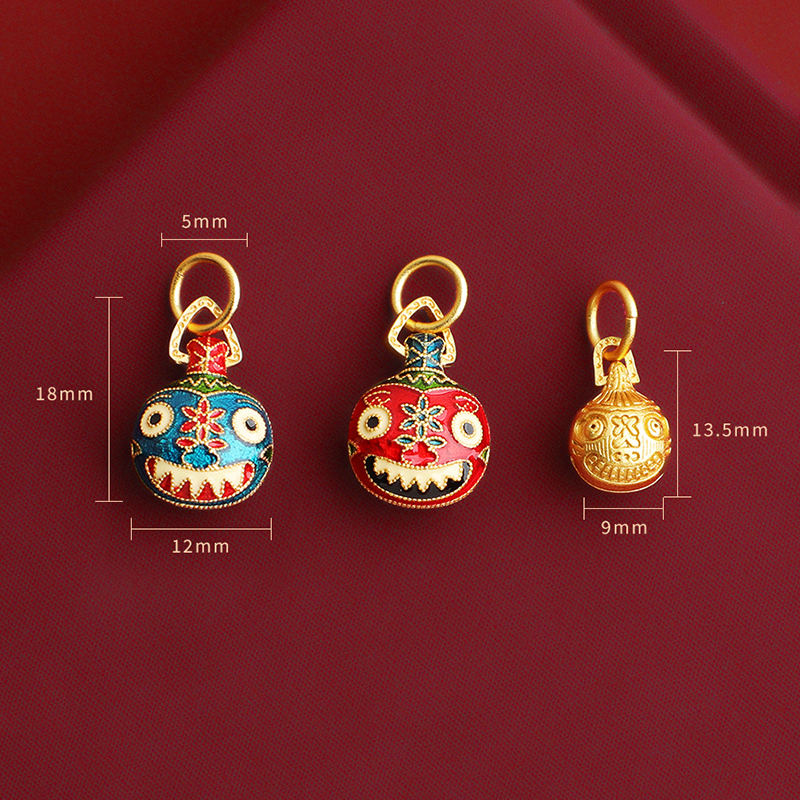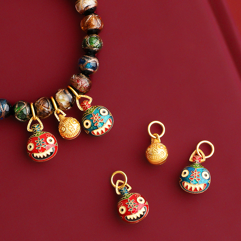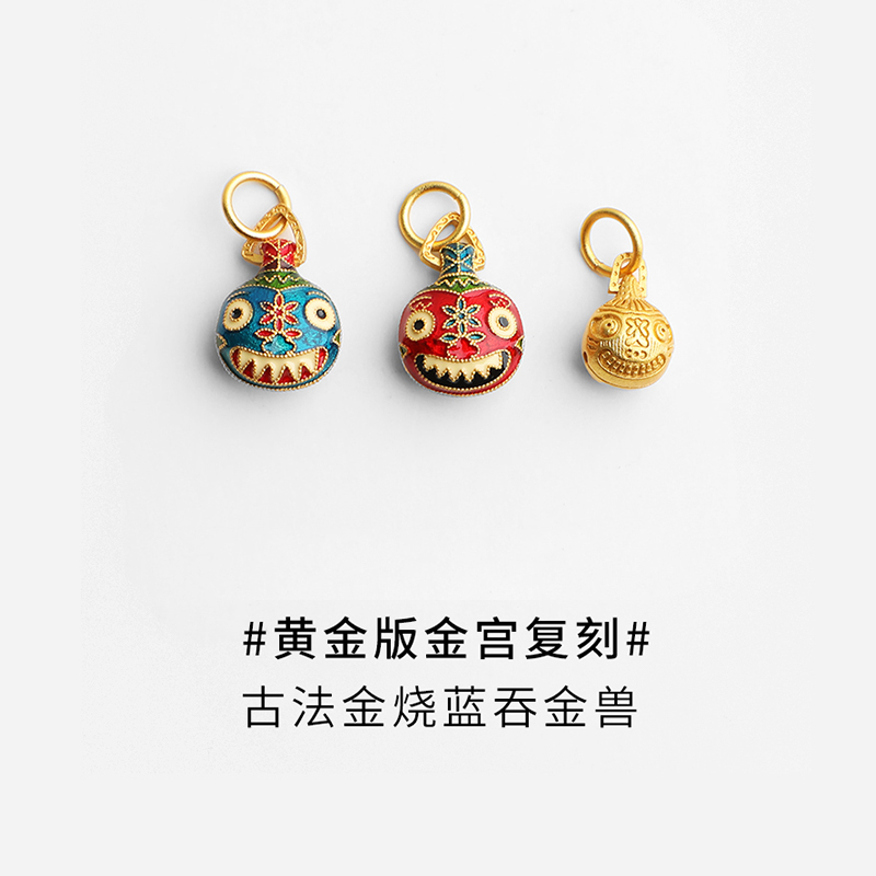 古法烧蓝吞金兽手链一家三口吊坠女生项链彩滴溜镀黄金小配件