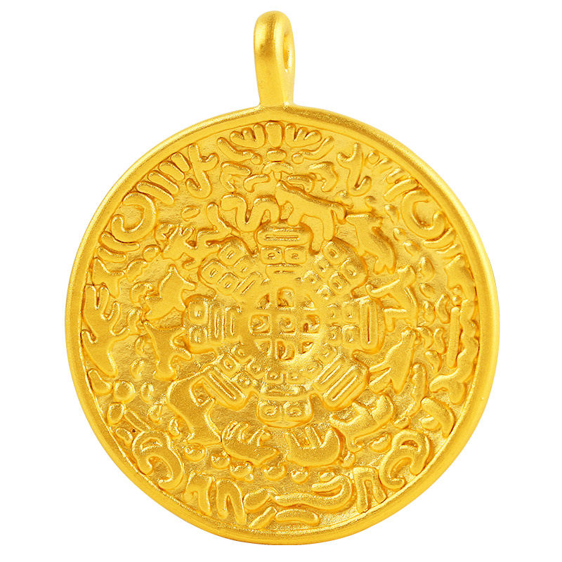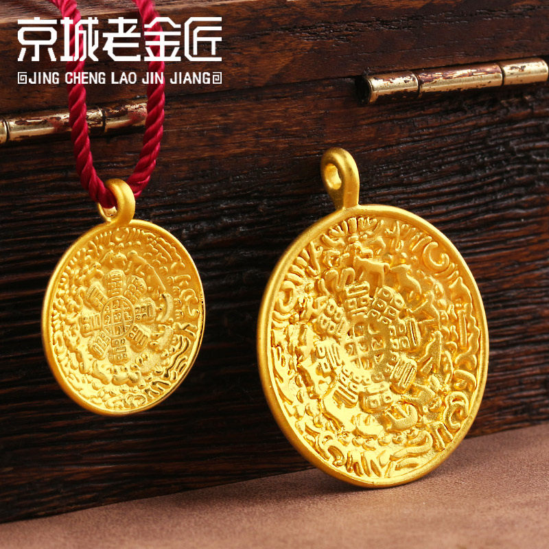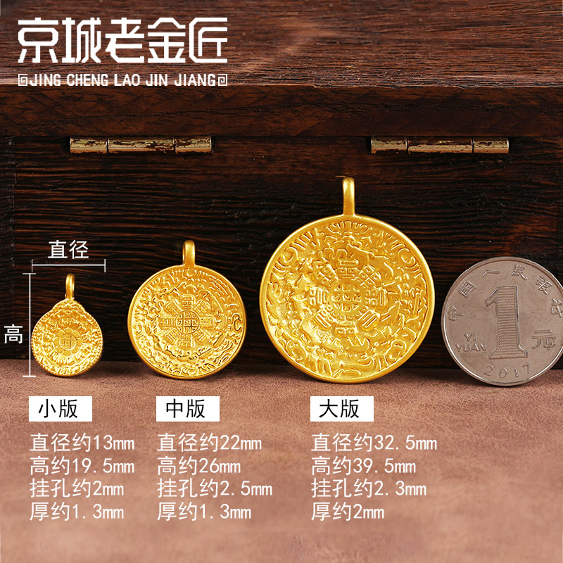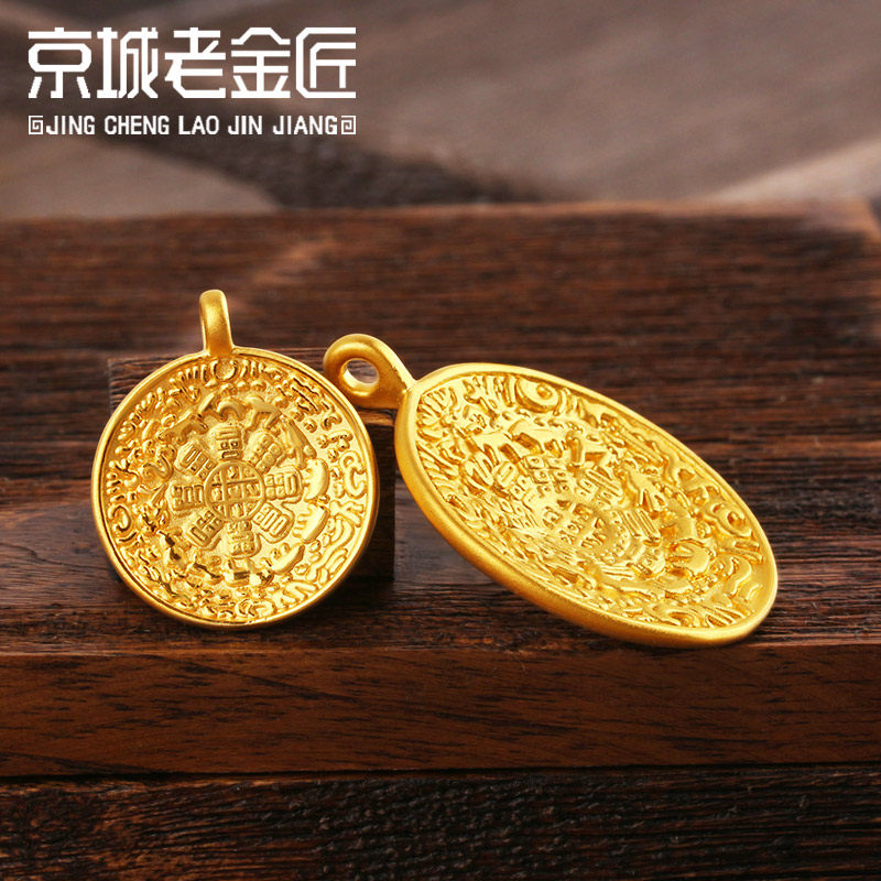 九宫八卦牌吊坠真金足金999项链手链手绳搭配件男女新3D硬黄金