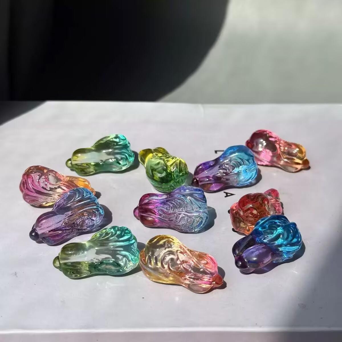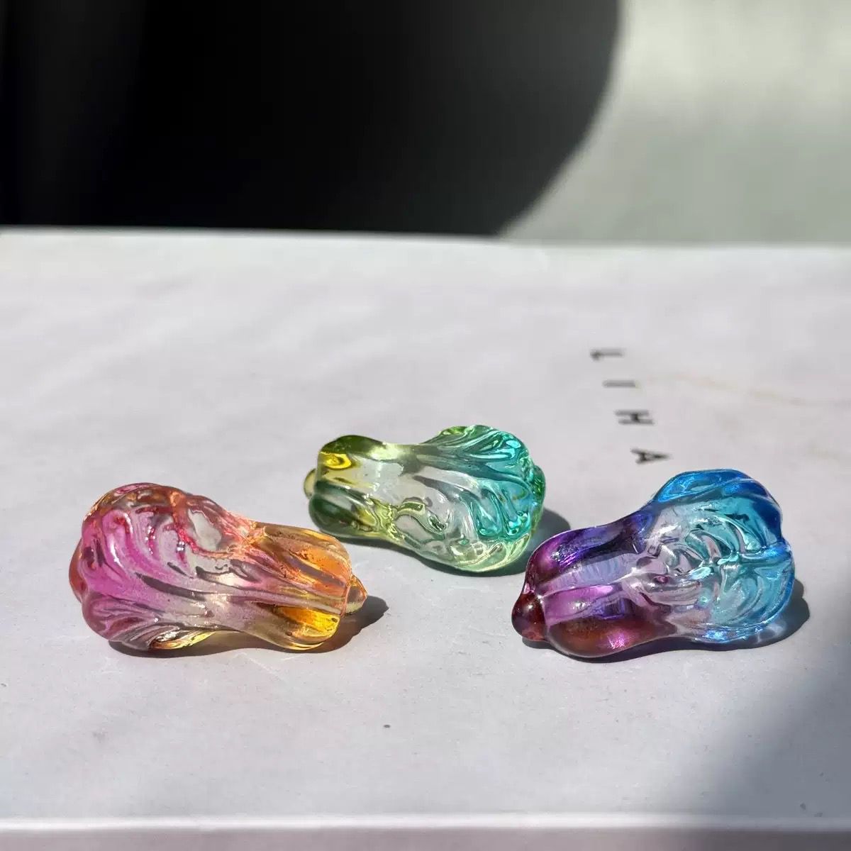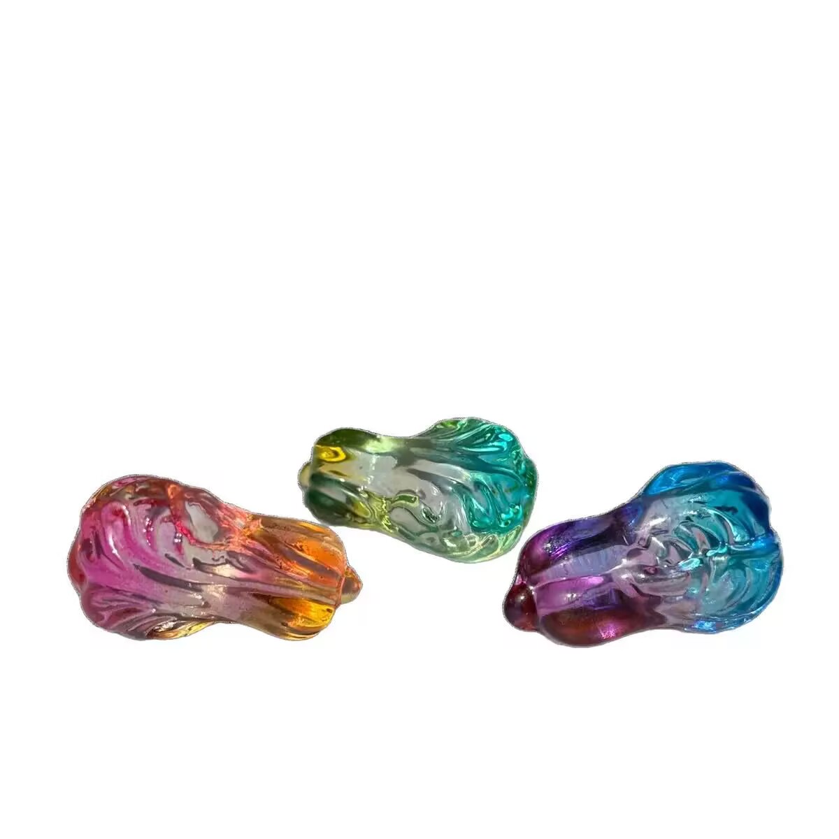 琉璃小白菜摆件水晶百财如意聚宝盆配件居家办公装饰开业乔迁礼品