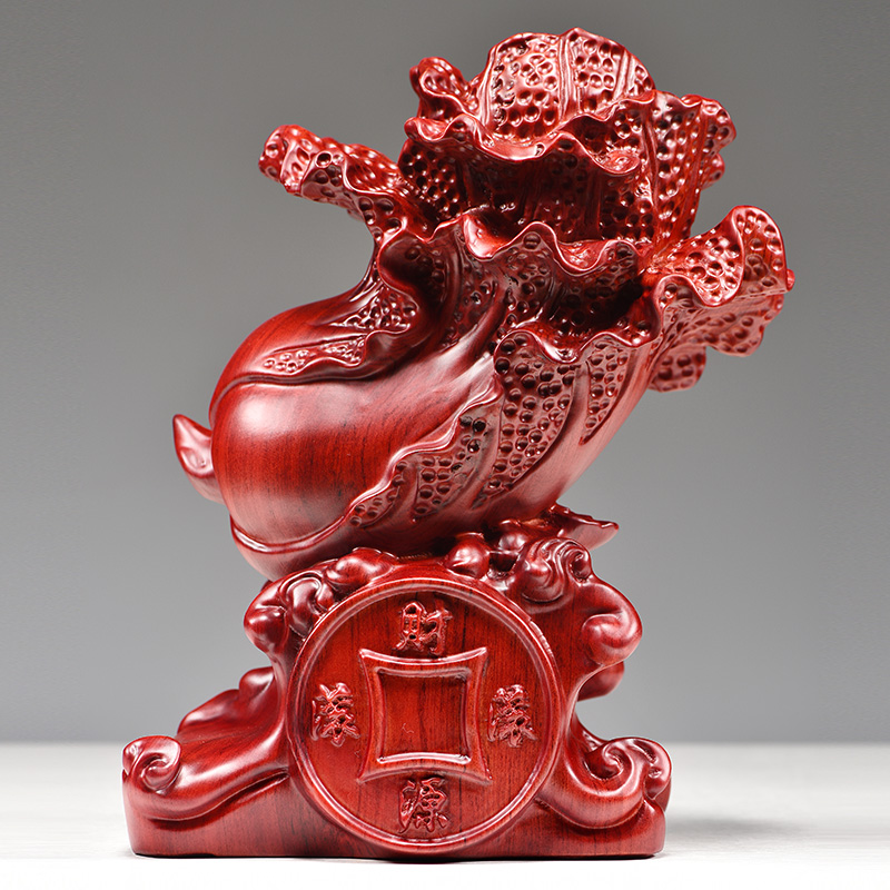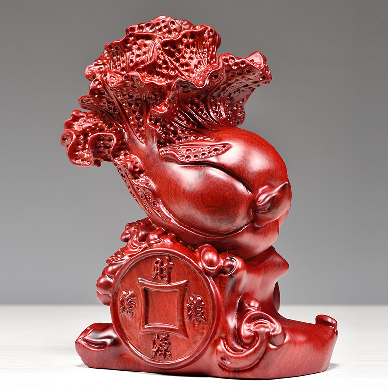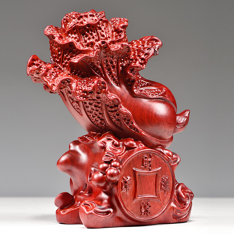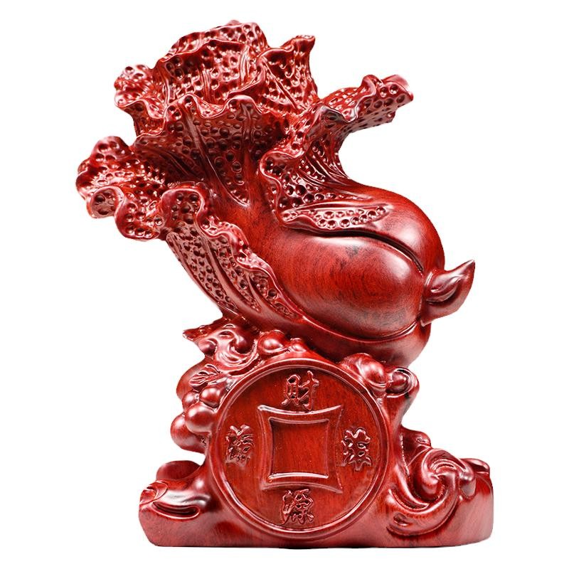 红色木质白菜摆件实木雕刻客厅酒柜装饰百财红木工艺品开业送礼品