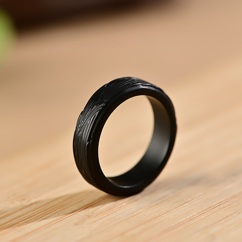 玉石对戒仿古纹尾戒墨玉男士戒指天然和田玉女款指环情侣戒子一对