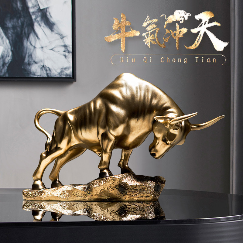牛气冲天华尔街动物金牛摆件轻奢客厅酒柜装饰品电视柜礼品送