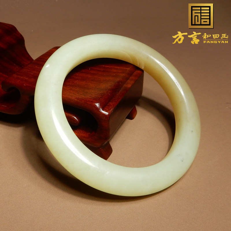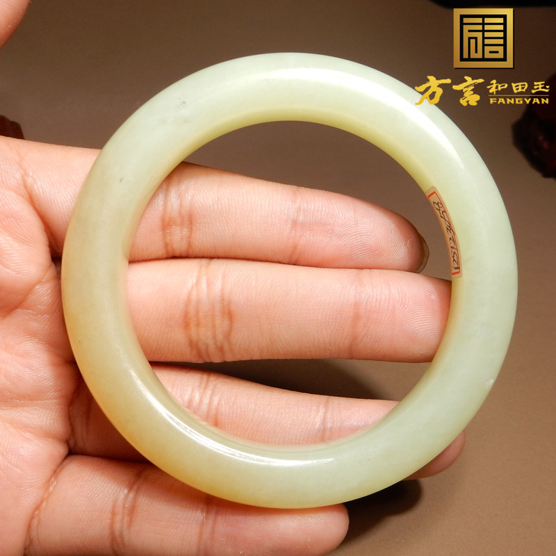 方言和田玉新疆油润细腻且末料黄口鸡油黄色带糖59mm正装手镯A9
