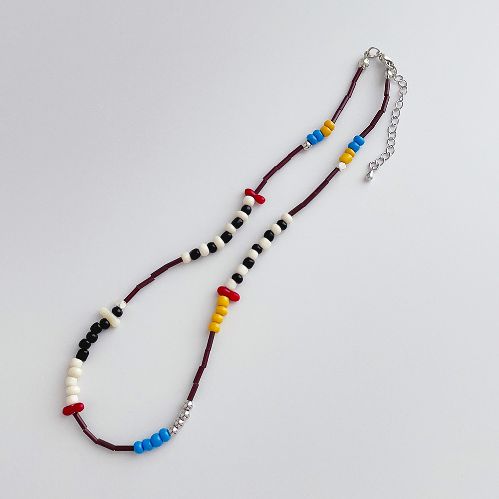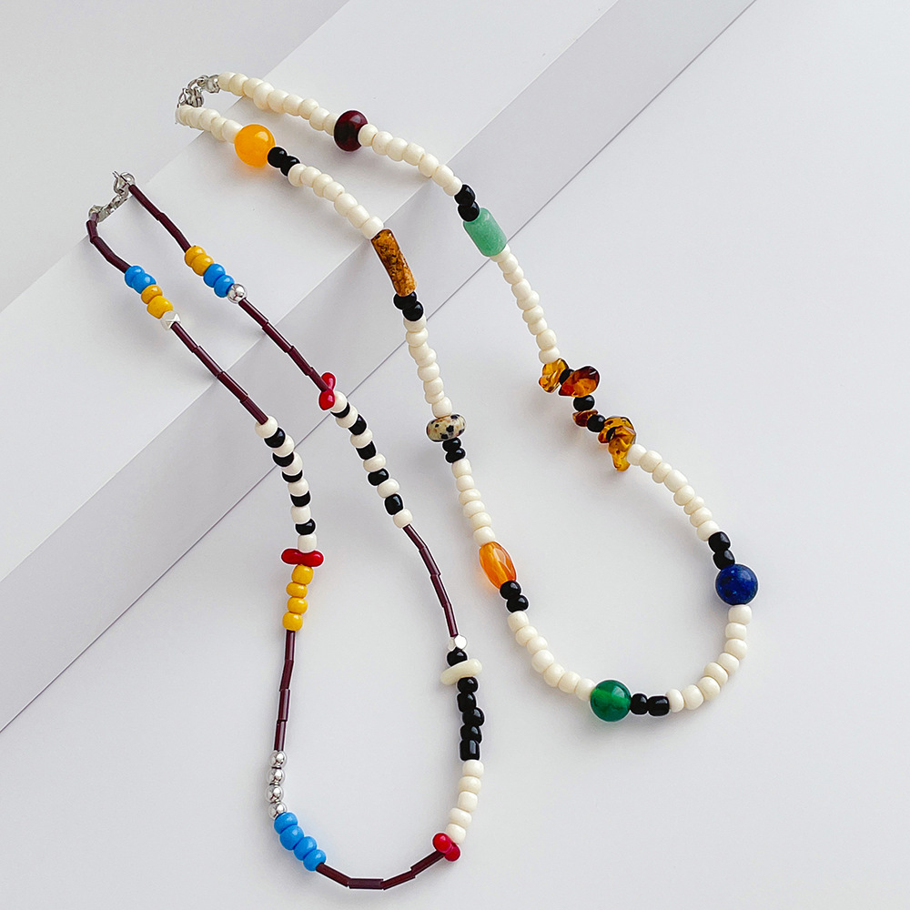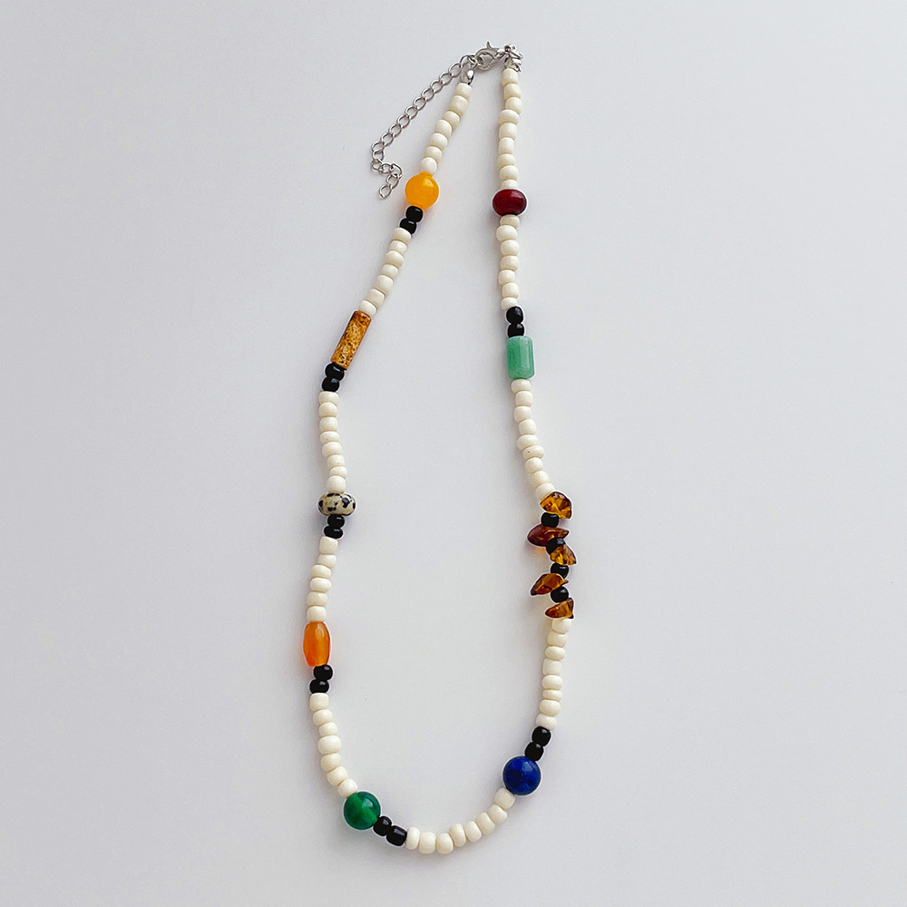 日韩新款小众t天然石米珠拼接项链ins几何树脂彩色吊坠锁骨链颈链