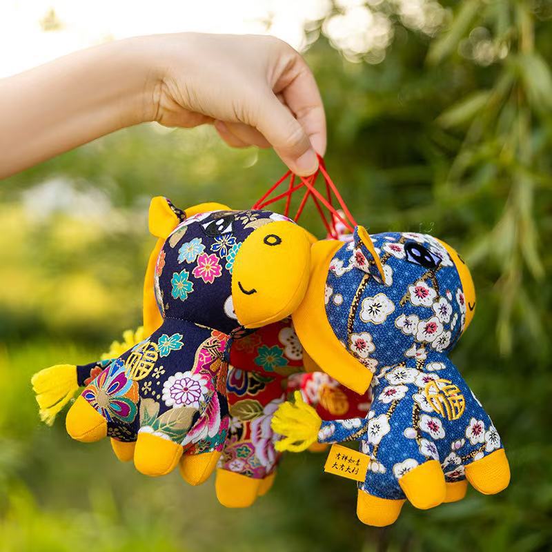 2026创意国风布艺小马毛绒玩具挂件生肖马摆件马年吉祥物公仔新年