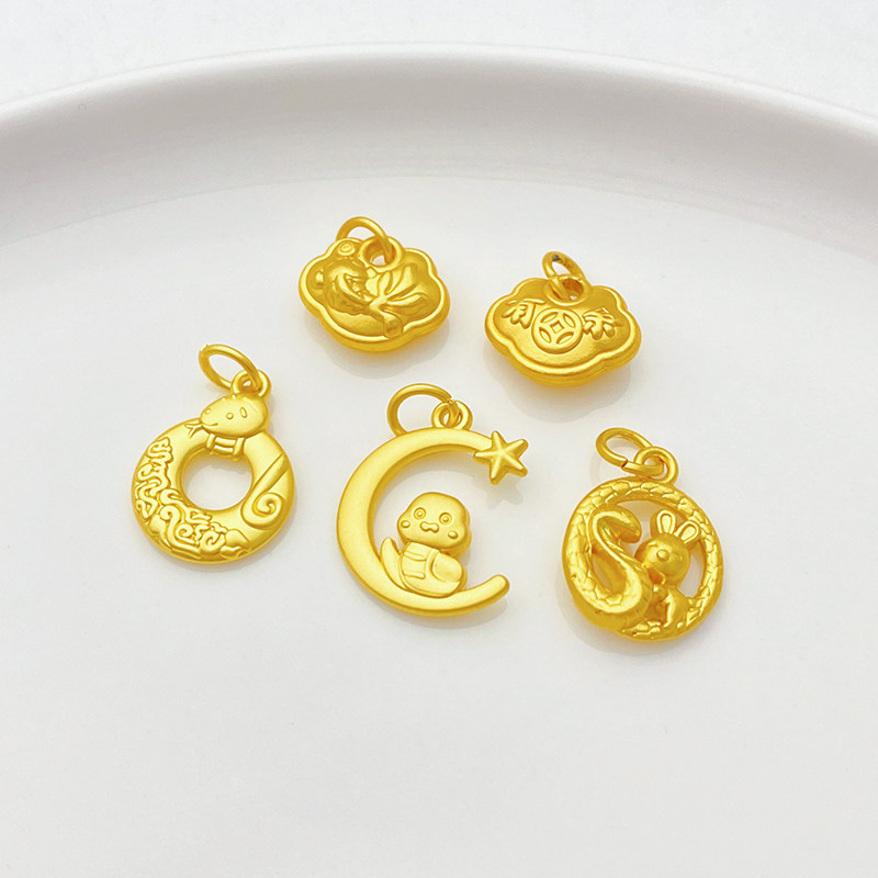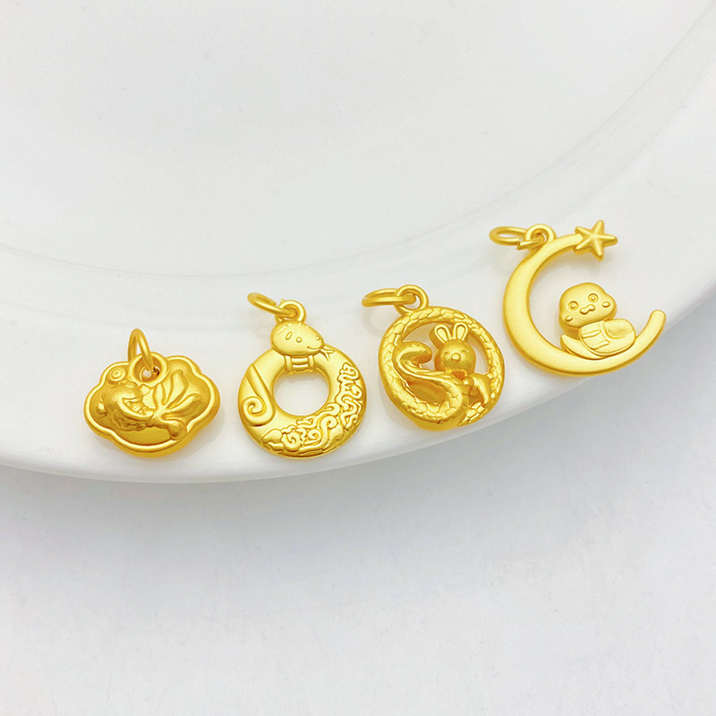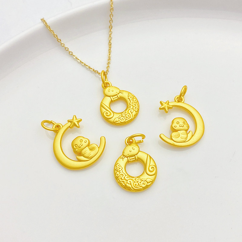 古法金星月生肖蛇年年有余吊坠挂件手工diy手链项链饰品材料配件