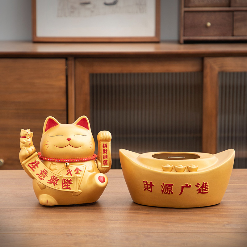 金色招财猫摆件开业自动招手摇手生意兴隆存钱罐入户收银台发财猫