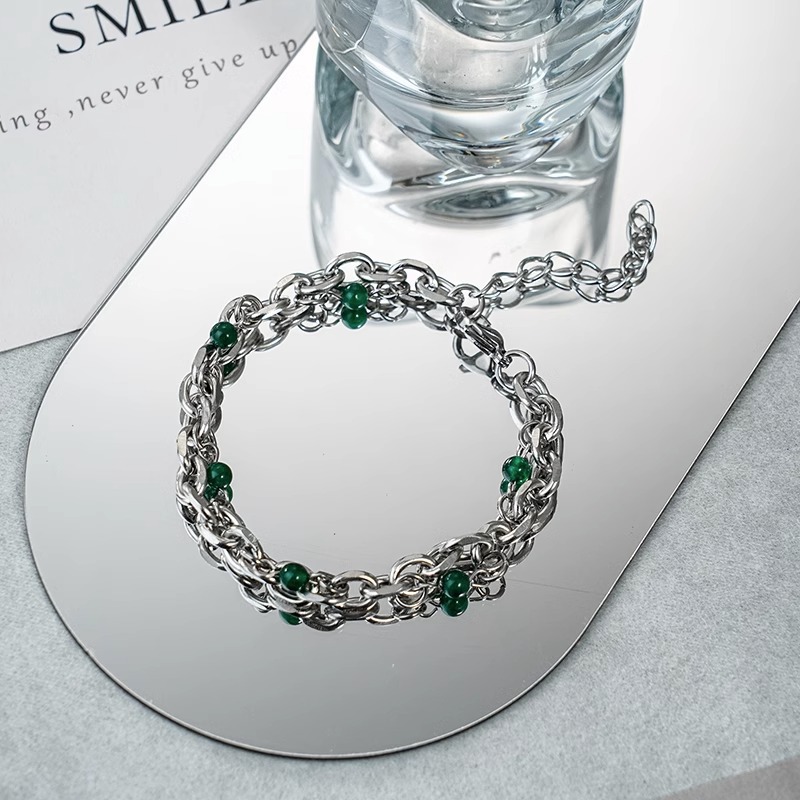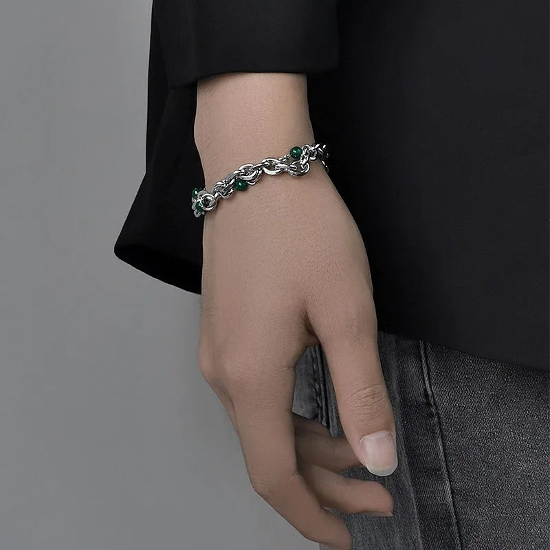 绿珠手链男士冷淡风手链不掉色个性小众设计钛钢潮流手饰高级配饰
