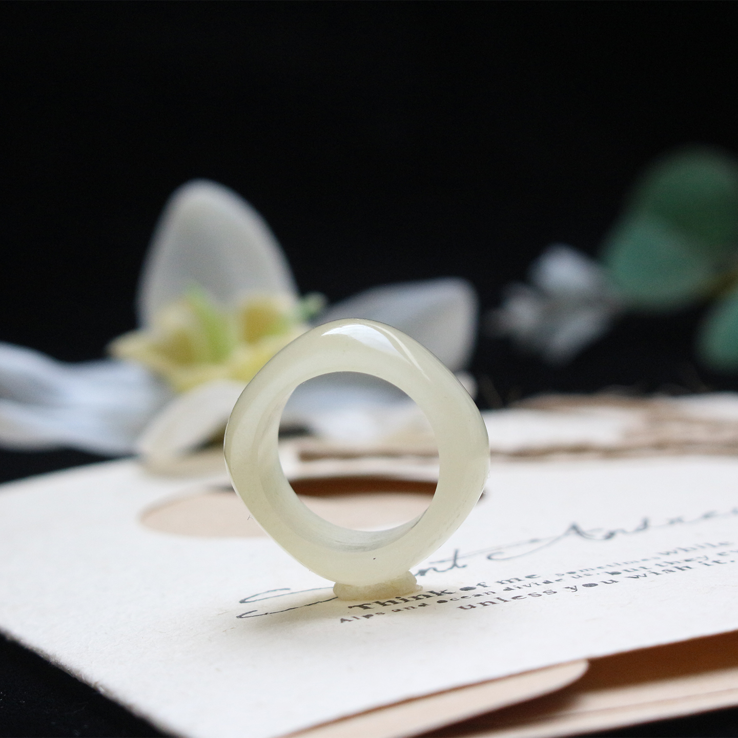 简约时尚款和田玉糖白玉方形戒指蜂蜜糖指环女士17mm新款可定制