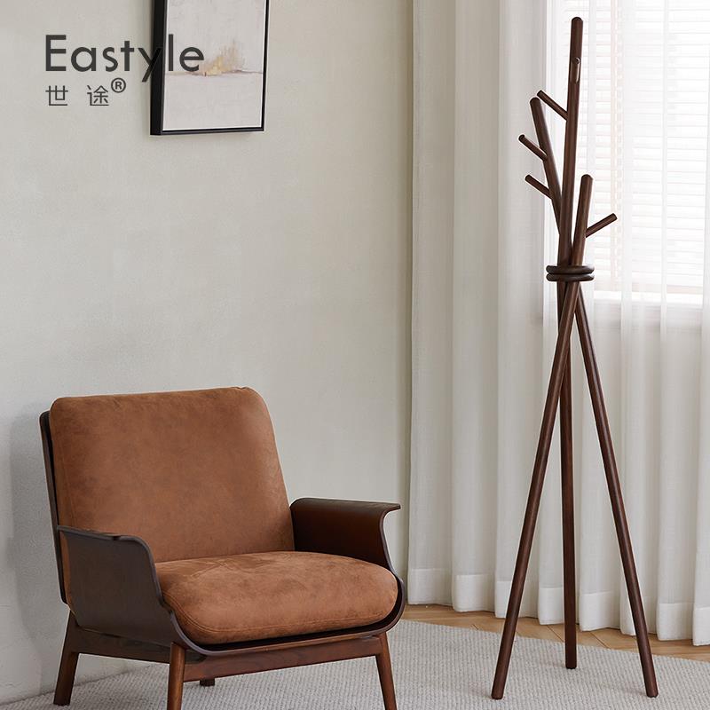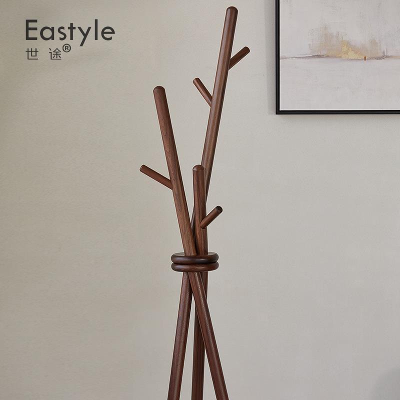 L7黑胡桃木衣架落地卧室转角实木挂衣架家用小型立式衣服挂架衣帽