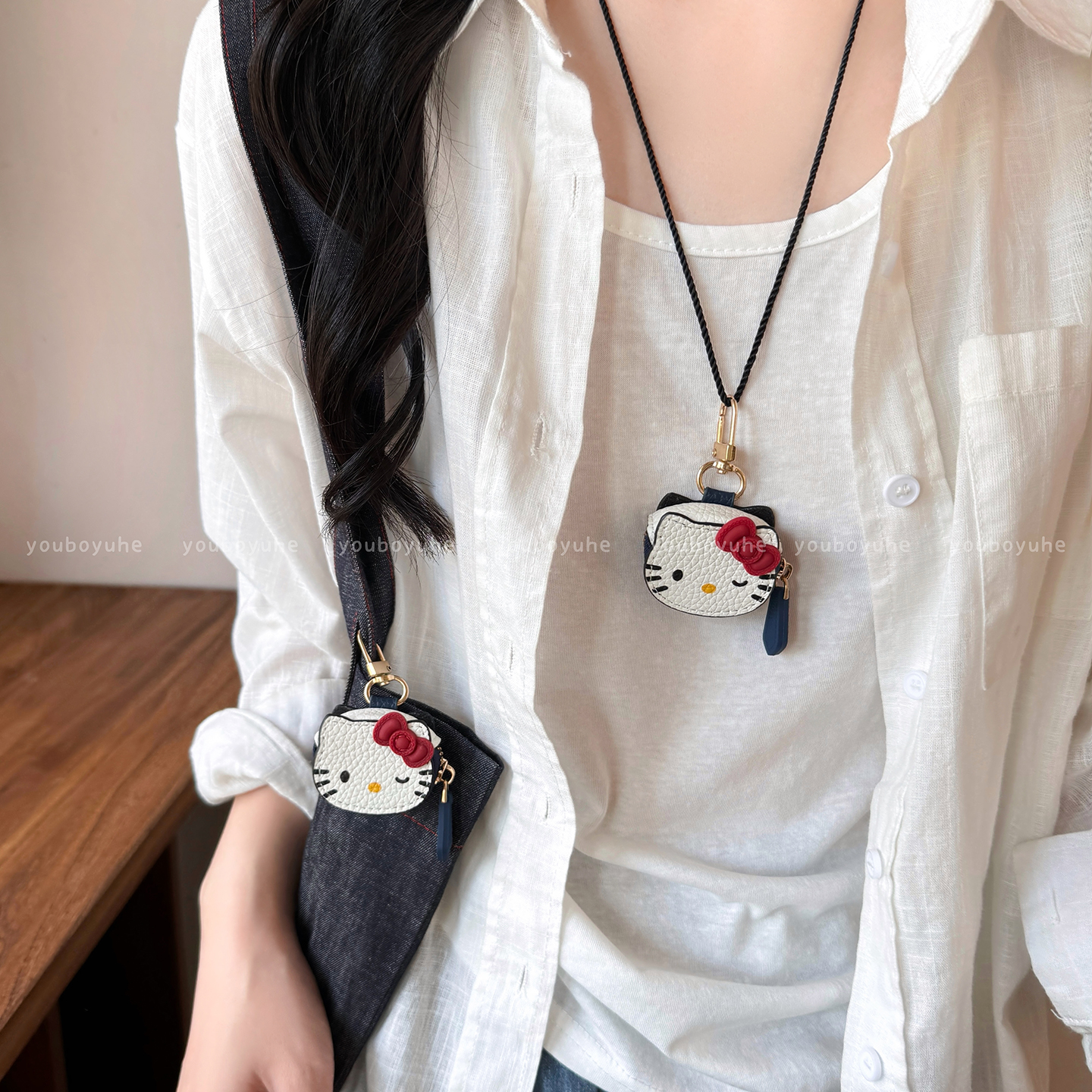可爱kt猫咪皮质吊坠长款挂脖项链女少女心甜美包包钥匙扣挂件配饰