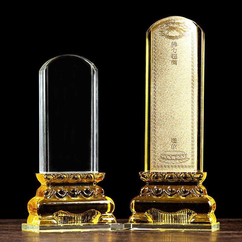 水晶双层莲花牌位架带字透明插卡片寺院摆放佛堂供桌压克力牌位架