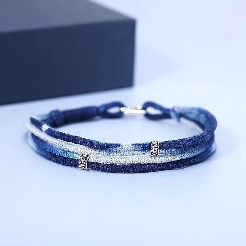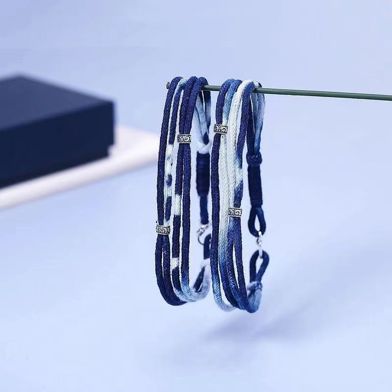 编织手绳简约日系小众原创设计多层蓝色扎染男女情侣手链