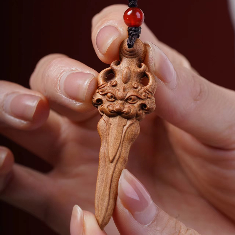 檀香轩辕剑木雕挂件汽车钥匙扣吊坠男女随身饰品手机挂件木质文玩