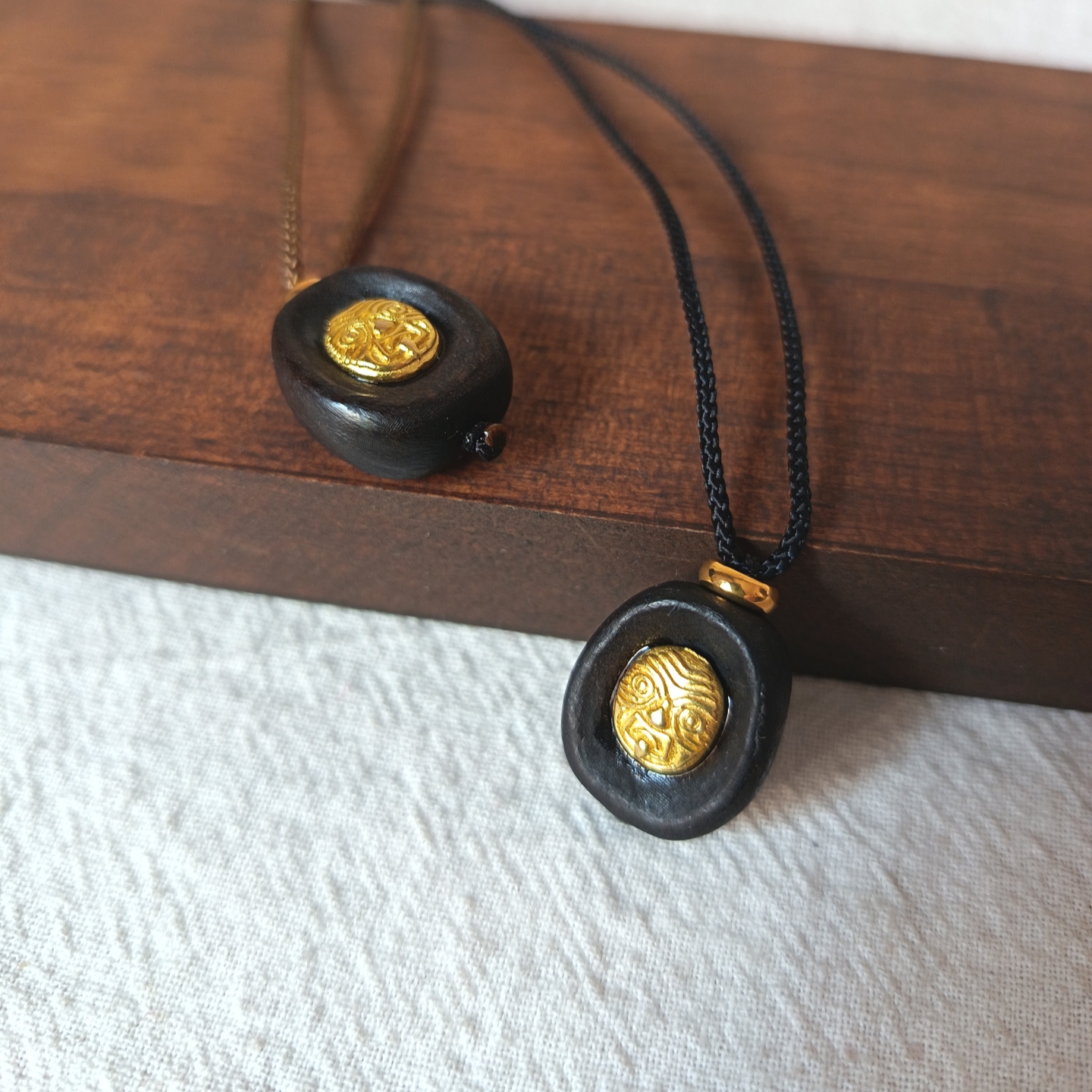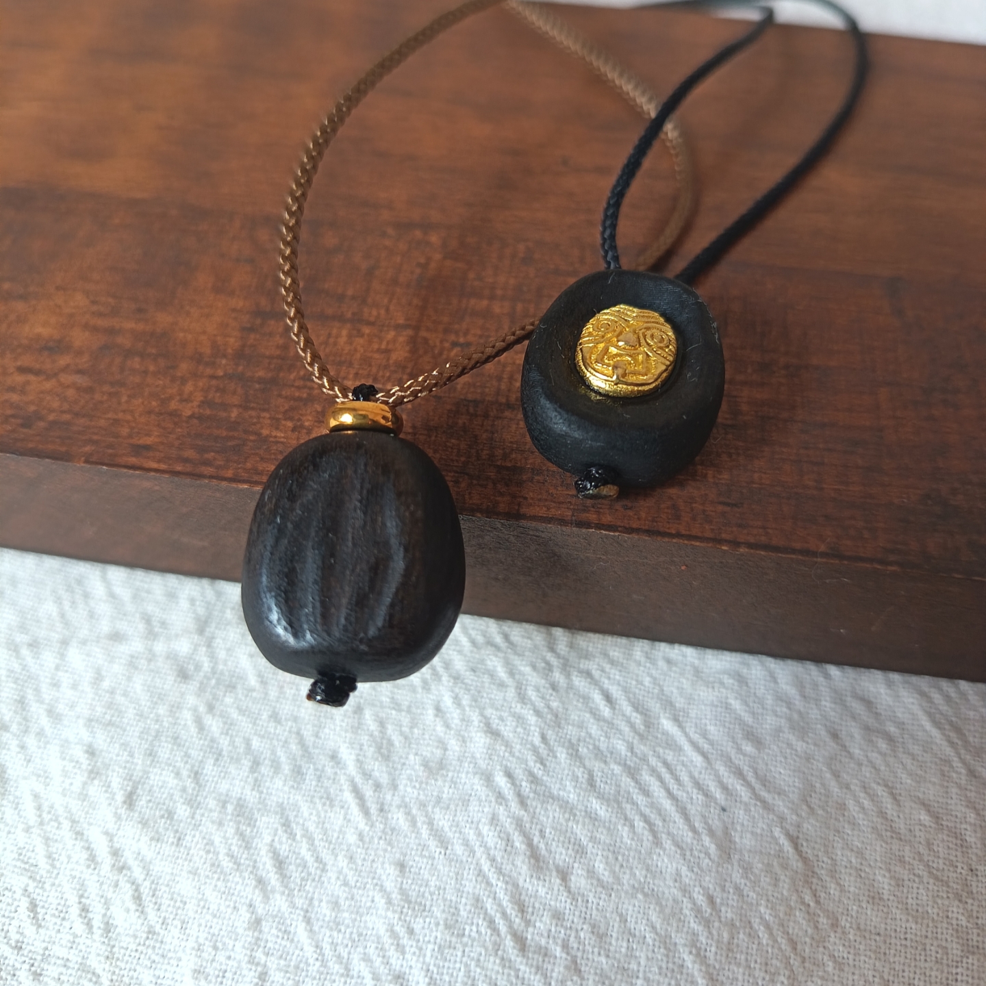 中式复古檀木镶嵌扎基拉姆项链手工编绳长款项链毛衣链财神保平安
